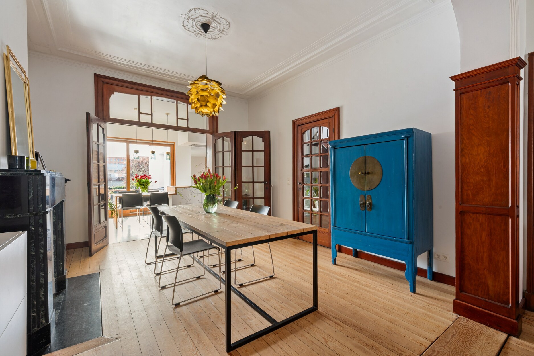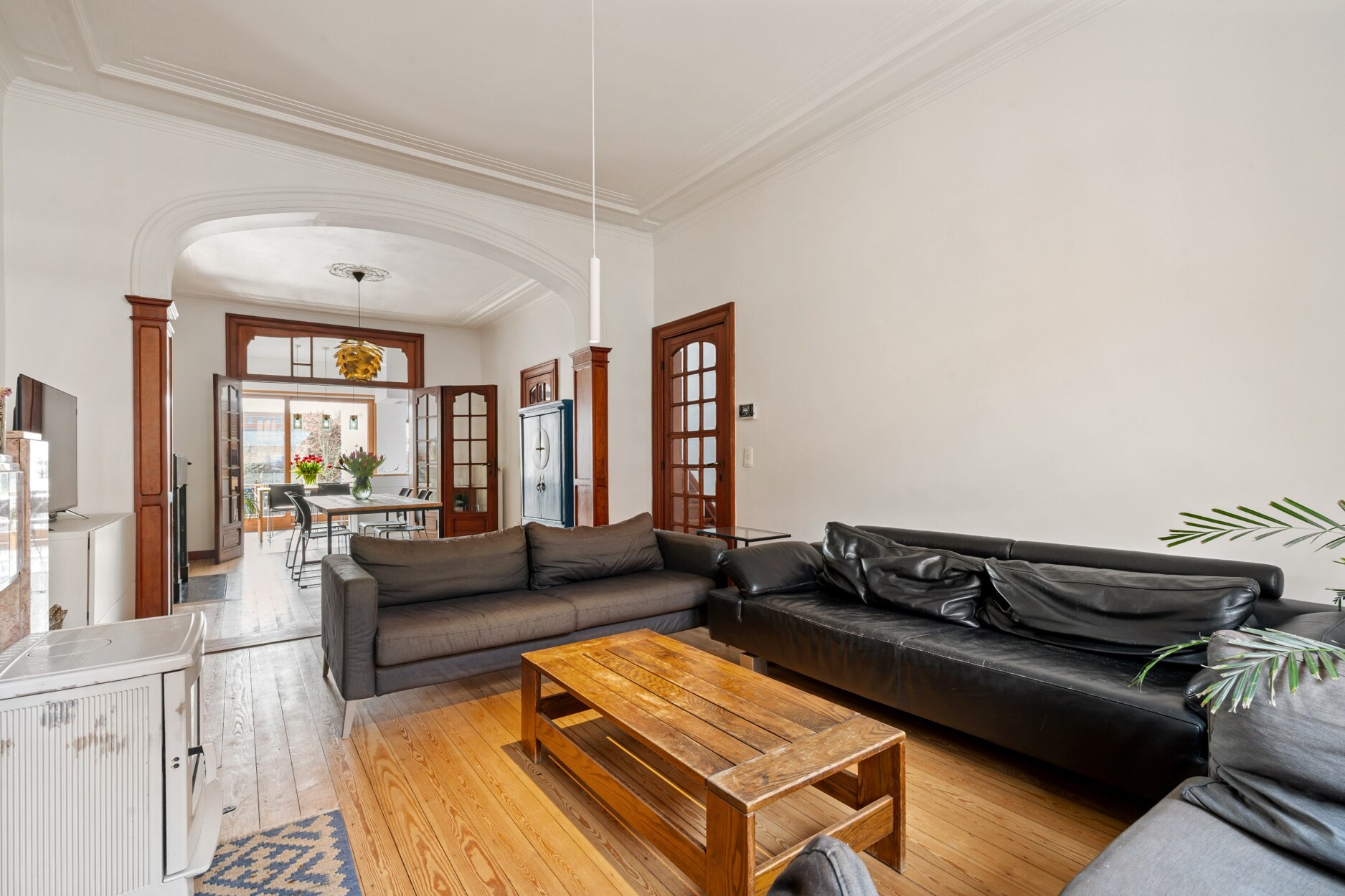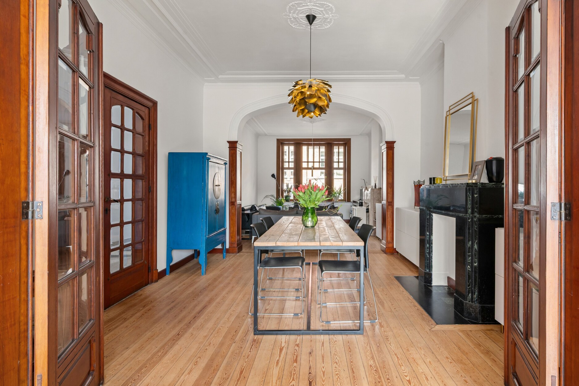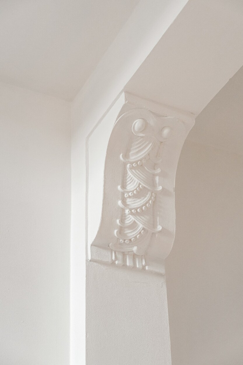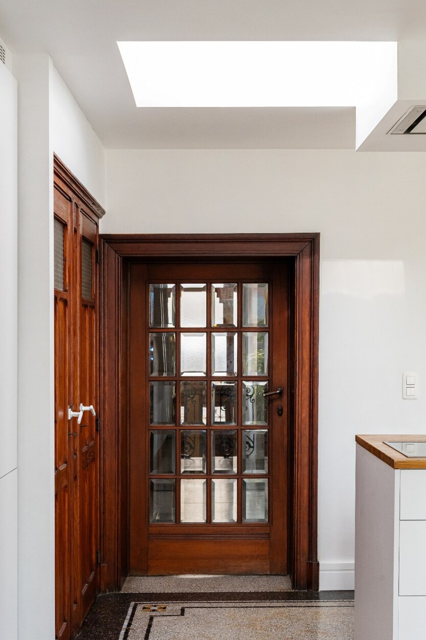 Tijdens de renovatie werd met veel respect voor de oorspronkelijke architectuur gewerkt. Authentieke elementen zoals hoge plafonds, plankenvloeren, sierlijke rozetten en natuurstenen schoorsteenmantels werden zorgvuldig behouden en gecombineerd met een stijlvolle, moderne en tijdloze afwerking.