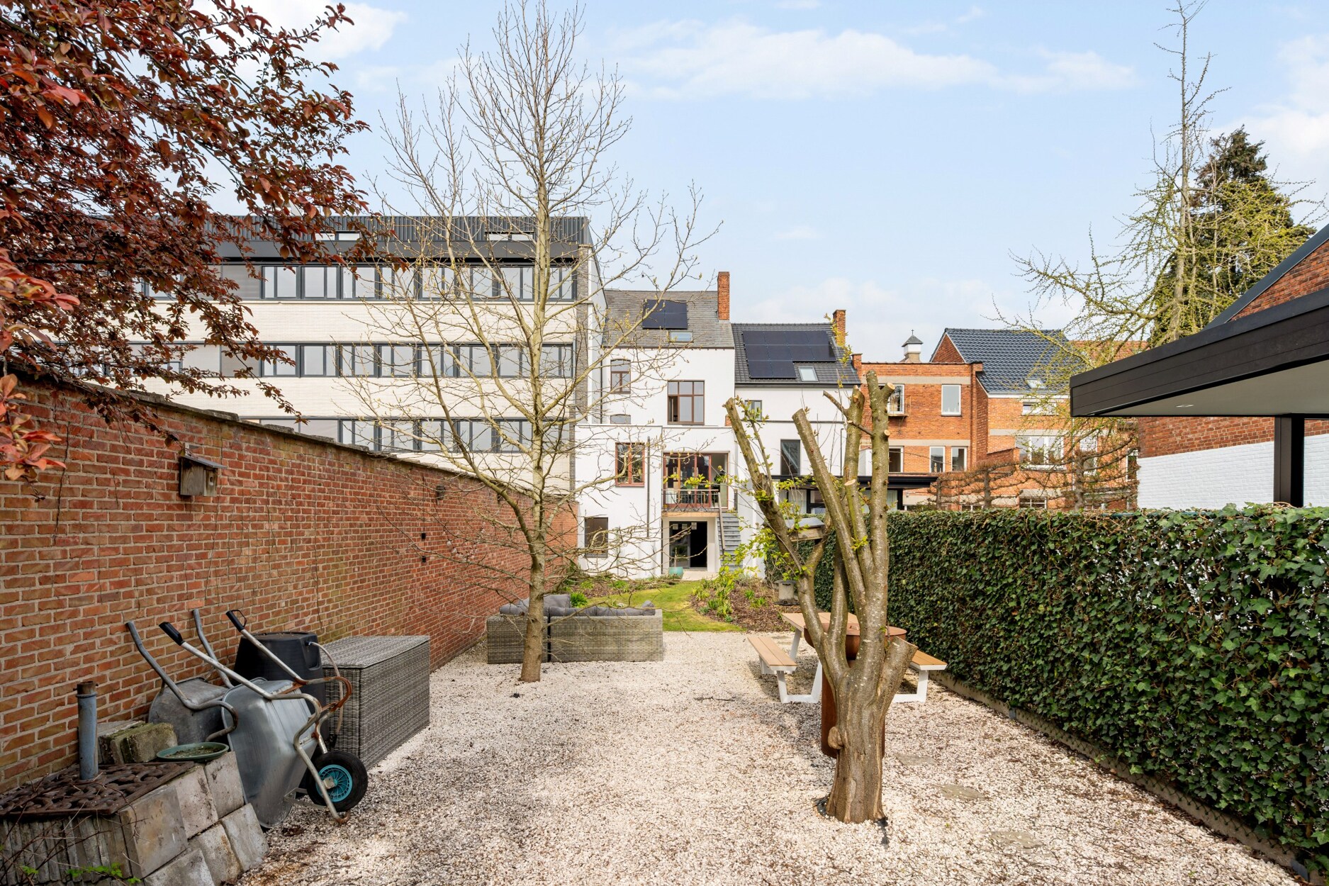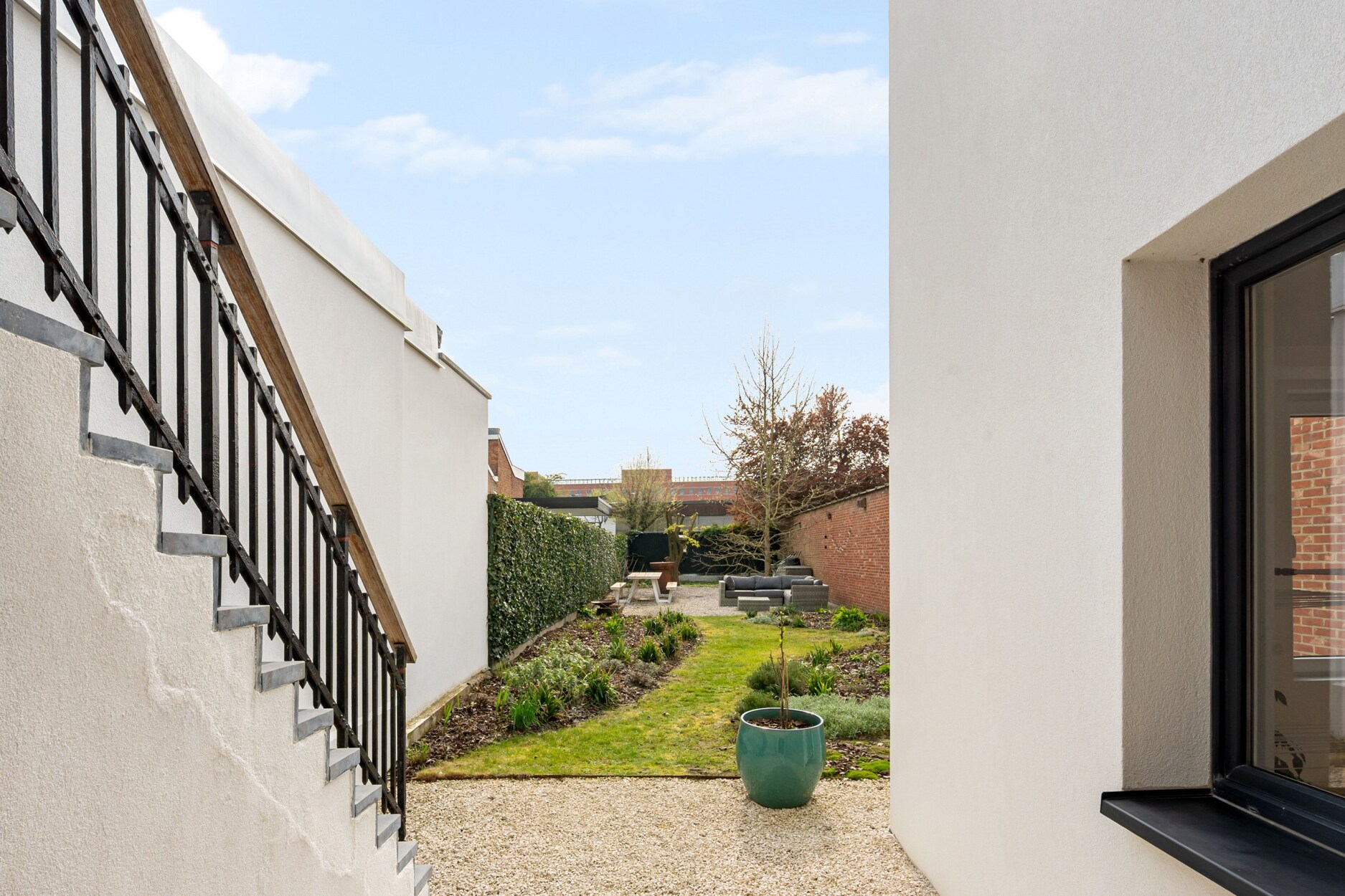 Ruime, volledig ommuurde stadstuin met ideale oriëntatie - bereikbaar via garage en hal