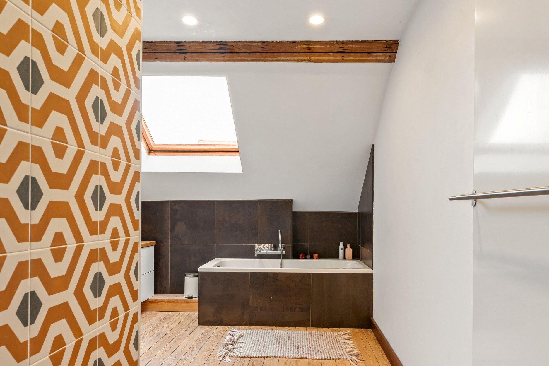 De bovenste verdieping is volledig ingericht met twee extra slaapkamers, een badkamer en een zolderruimte tot in de nok. Vanuit de slaapkamer aan de straatzijde heeft u toegang tot een charmant balkon.