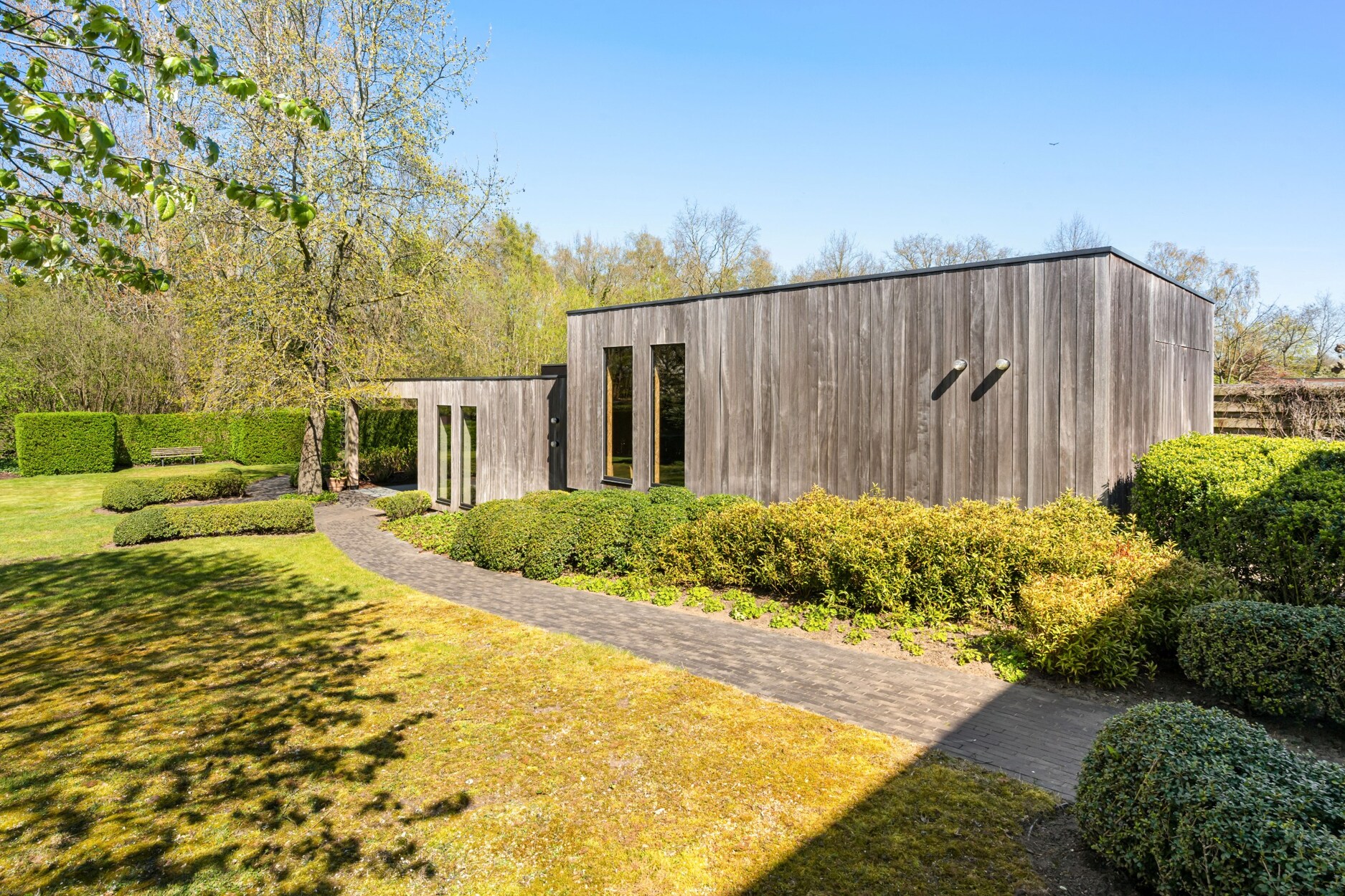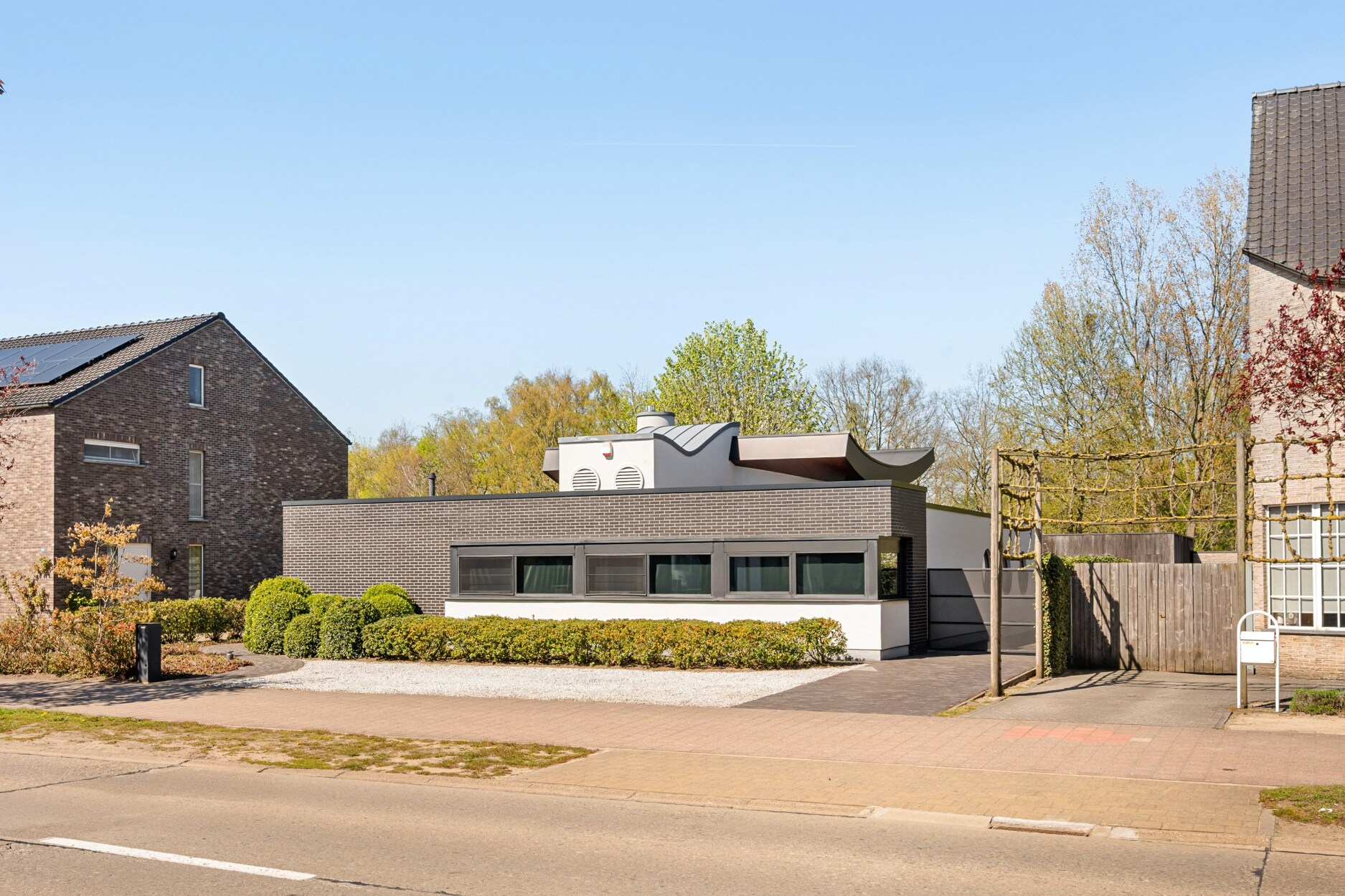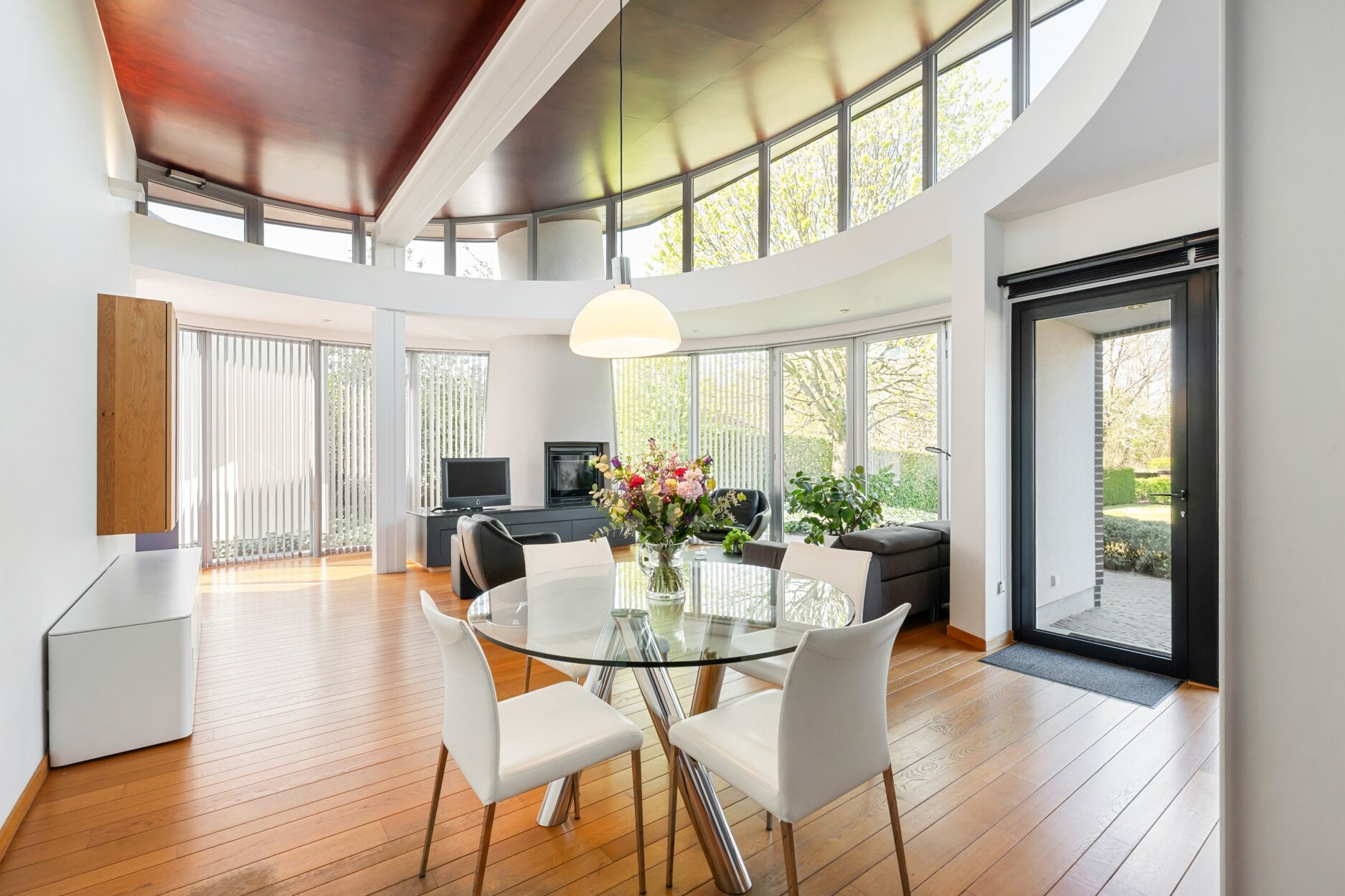 Deze bijzondere gelijkvloerse villa combineert hedendaags comfort met een prachtige natuurlijke omgeving. Deze eigendom wordt gekenmerkt door grote glaspartijen, een hoogwaardige afwerking en een unieke architectuur.