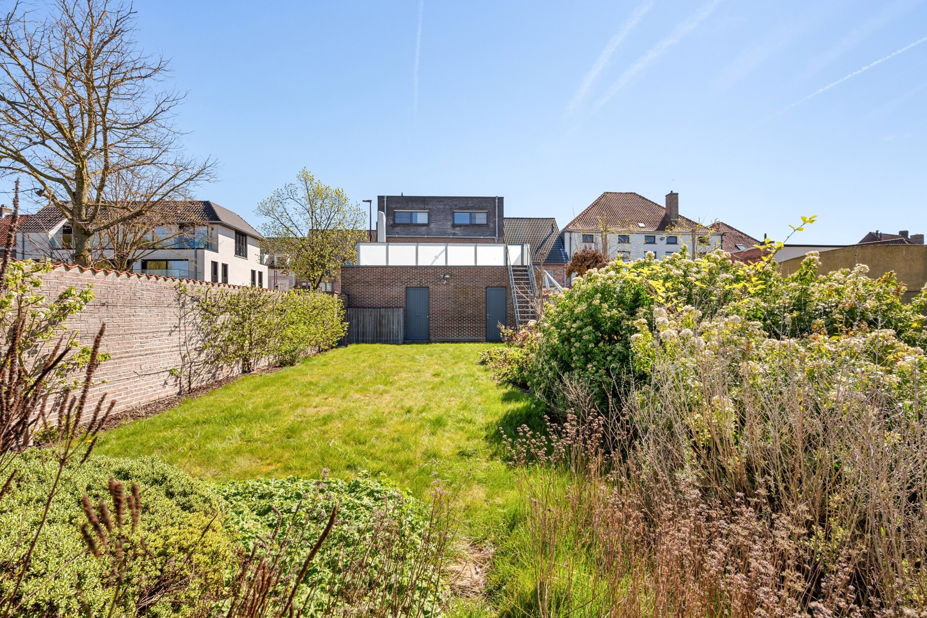 - Achteraan bevindt zich een mooi aangelegde, zonnige tuin met westelijke oriëntatie en mogelijkheid tot het plaatsen van een carport.