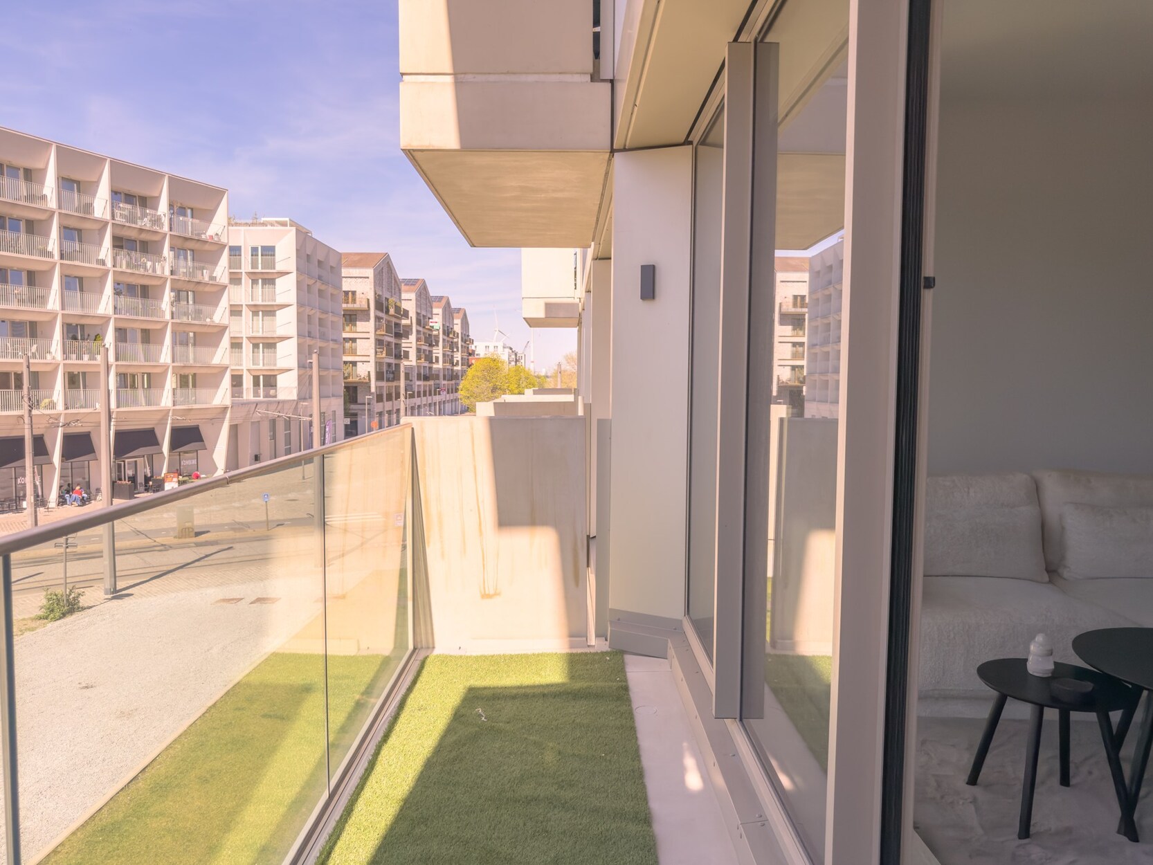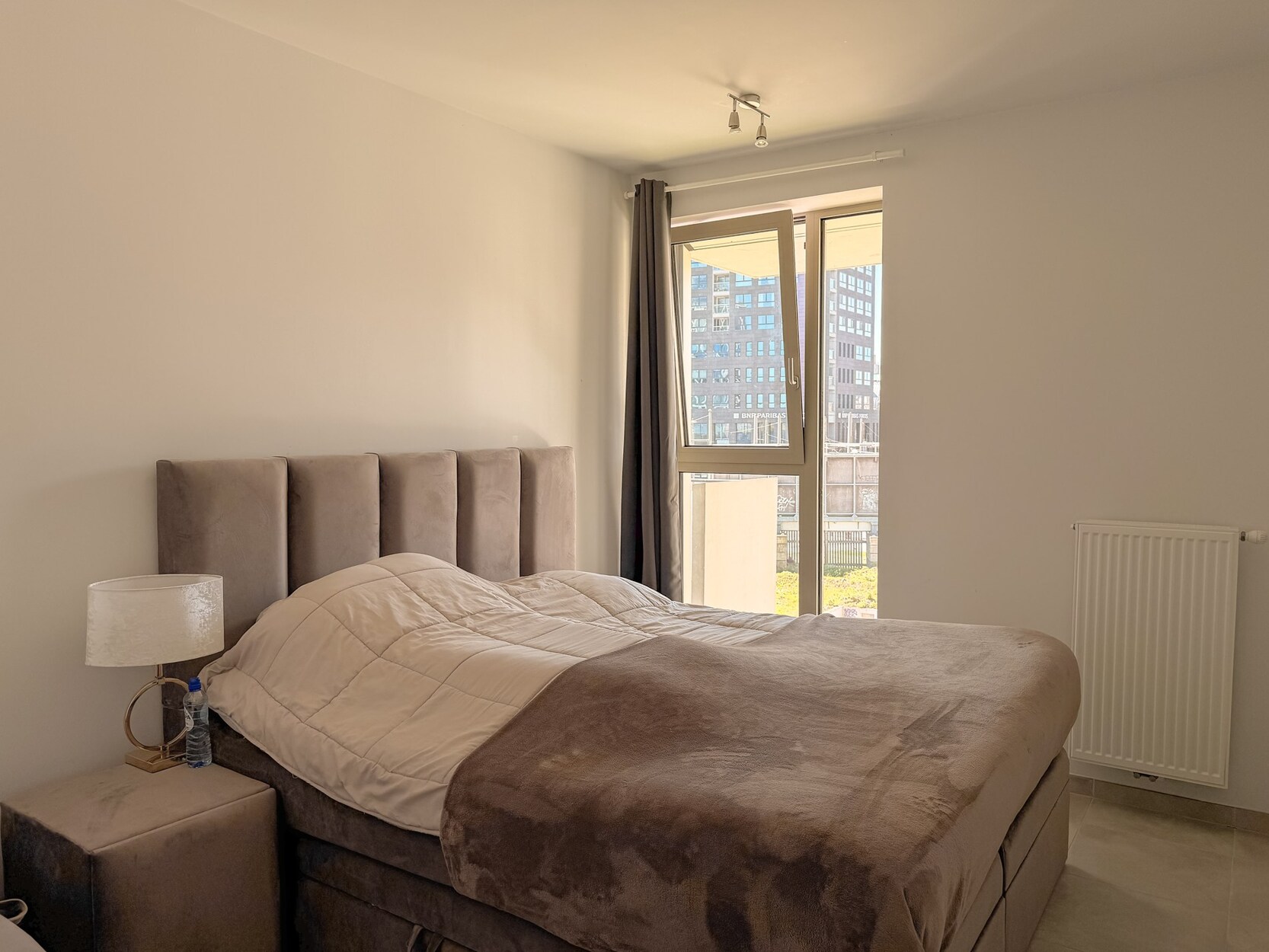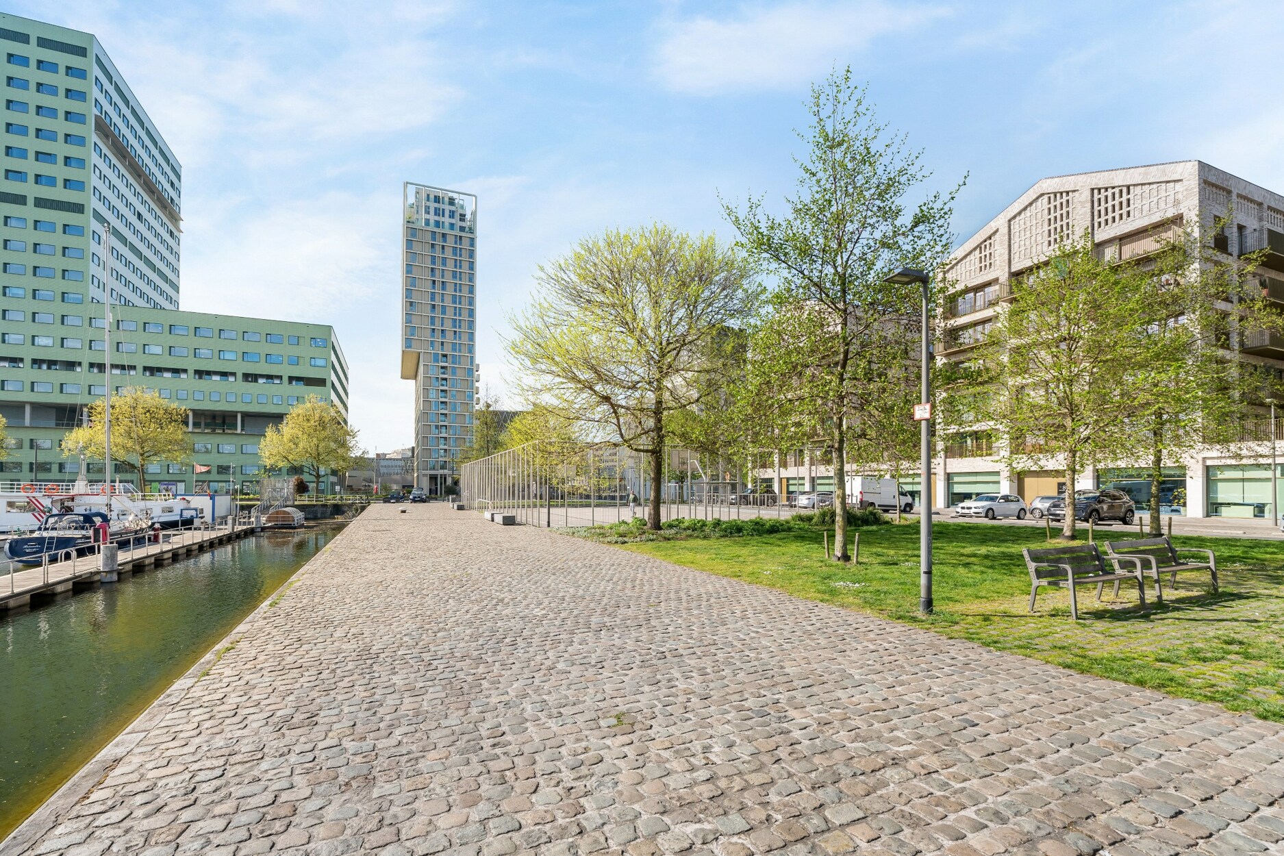 Met zicht op het Kempischdok bevindt zich dit nieuwbouwappartement op de eerste verdieping.