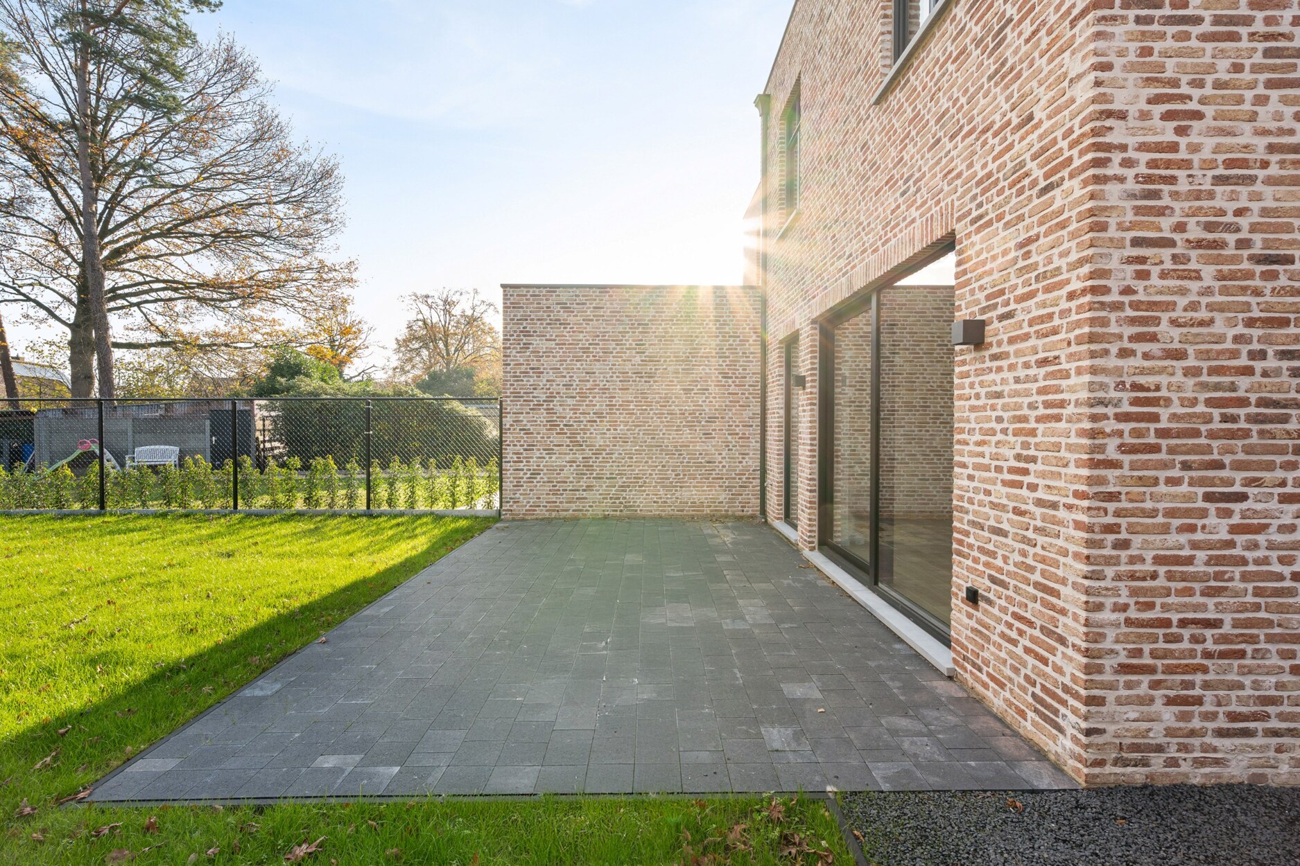 De tuin werd aangelegd met een ingezaaid gazon, siergrassen en een mooi zonneterras. Achteraan in de tuin werd een wadi aangelegd. De oprit is smaakvol uitgevoerd in grind en biedt een verzorgde, uitnodigende uitstraling. Bovendien werd in de bouwaanvraag reeds een vergunning voor een carport voorzien.