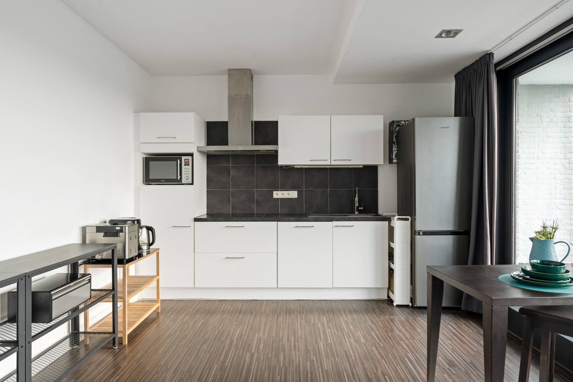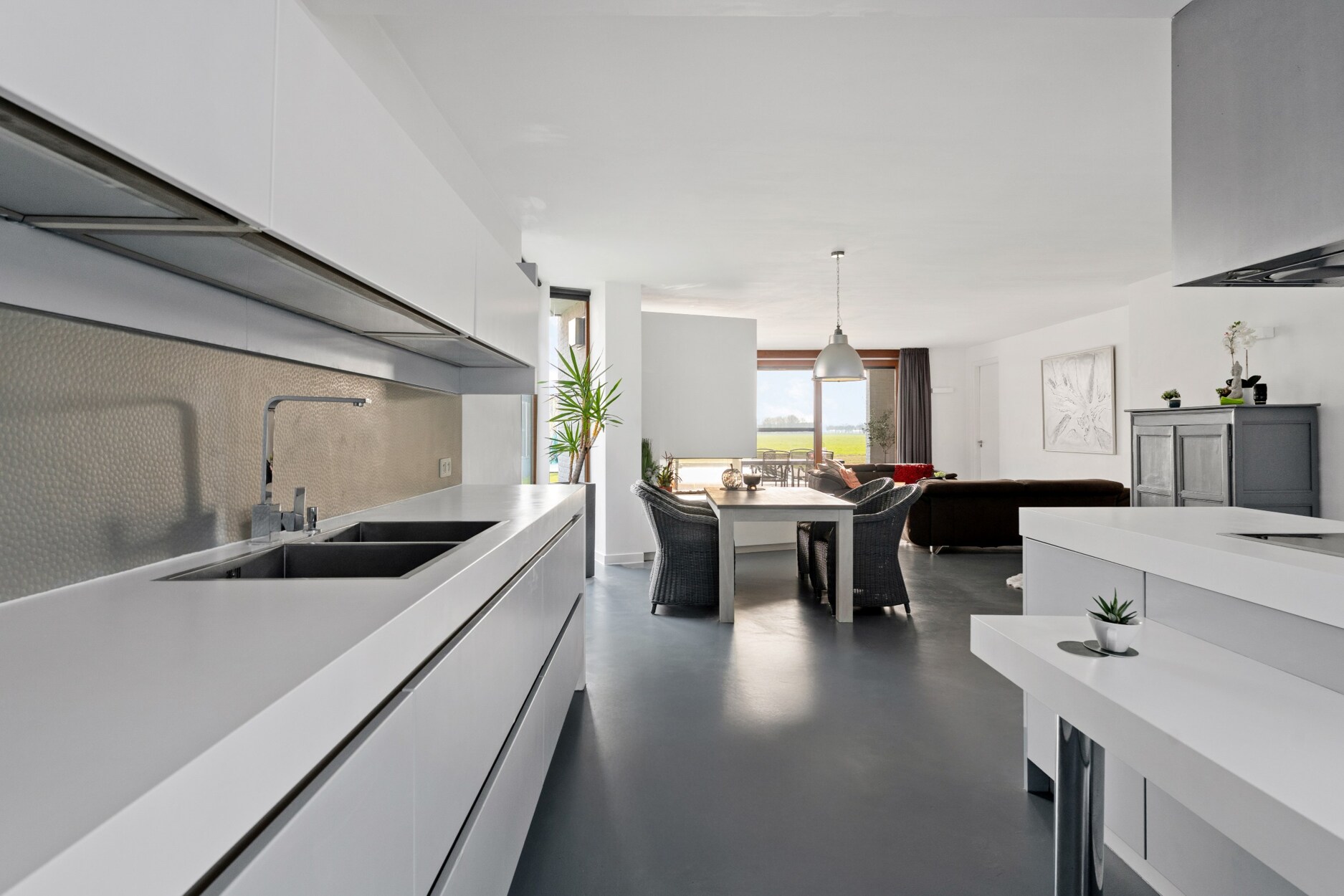 De moderne open keuken is volledig uitgerust met hedendaagse toestellen en beschikt over een charmante ontbijthoek waar u de dag in alle rust kunt beginnen.