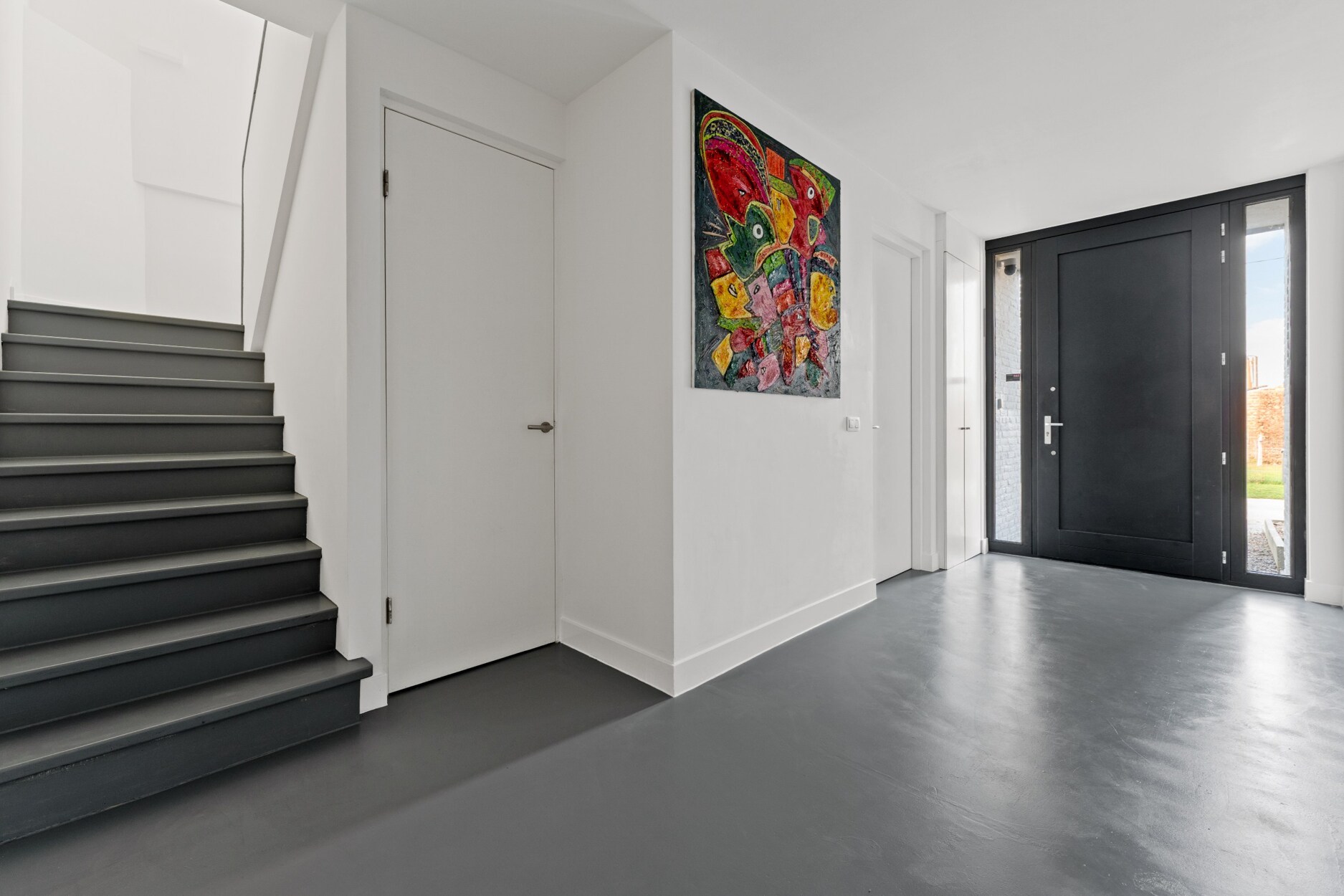 Bij het betreden van de woning via de royale inkomhal wordt u meteen verwelkomd door een aangenaam gevoel van ruimte en licht. Vanuit de hal heeft u toegang tot het gastentoilet, een praktische wasruimte/berging, de kelder, de leefruimte en de stijlvolle trap naar de bovenverdieping. De grote raampartijen en hoge plafonds springen hier meteen in het oog en versterken het open karakter van de woning.