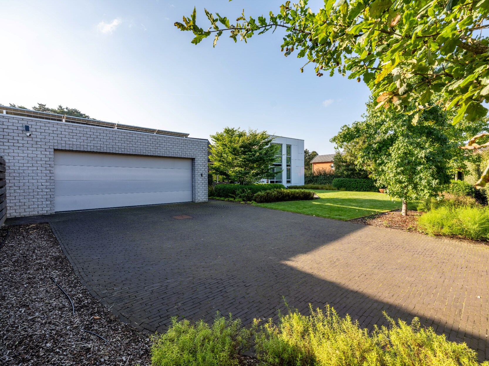 Losstaande dubbele garage met sectionaal poorten.