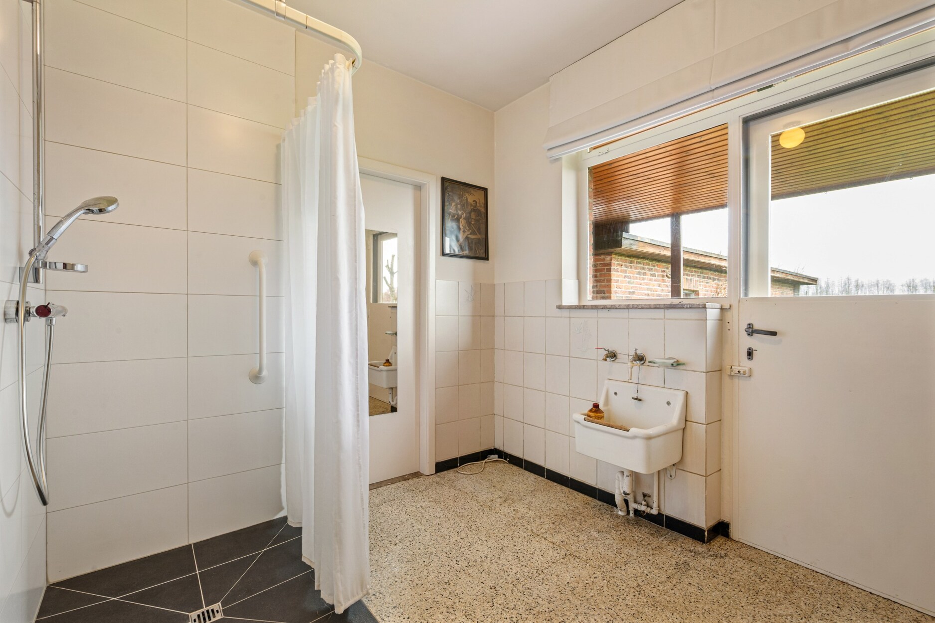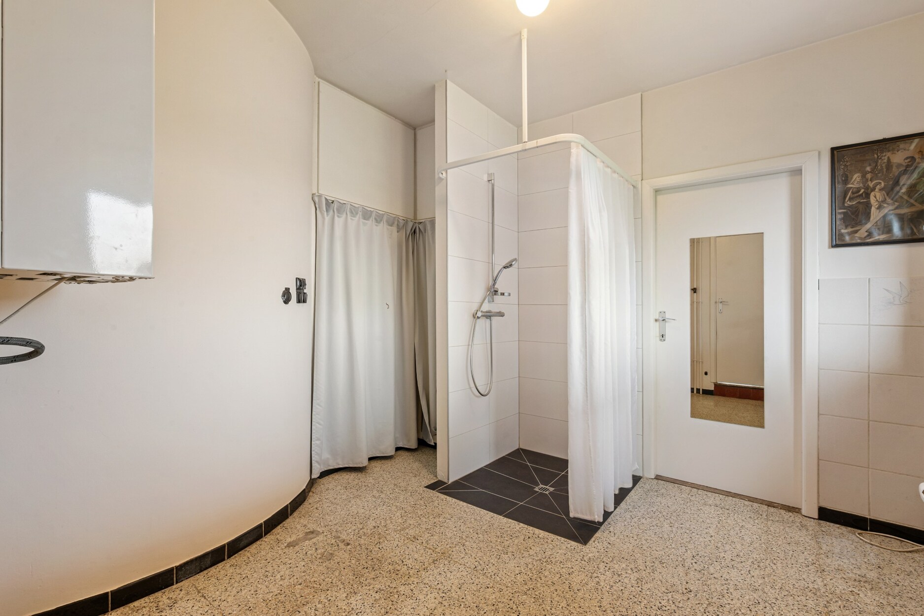 Op het gelijkvloers komt u binnen via de inkomhal, die leidt naar de ruime en lichtrijke leefruimte. Aansluitend bevindt zich de keuken, samen met een praktische berging en een extra douchekamer/wasruimte.