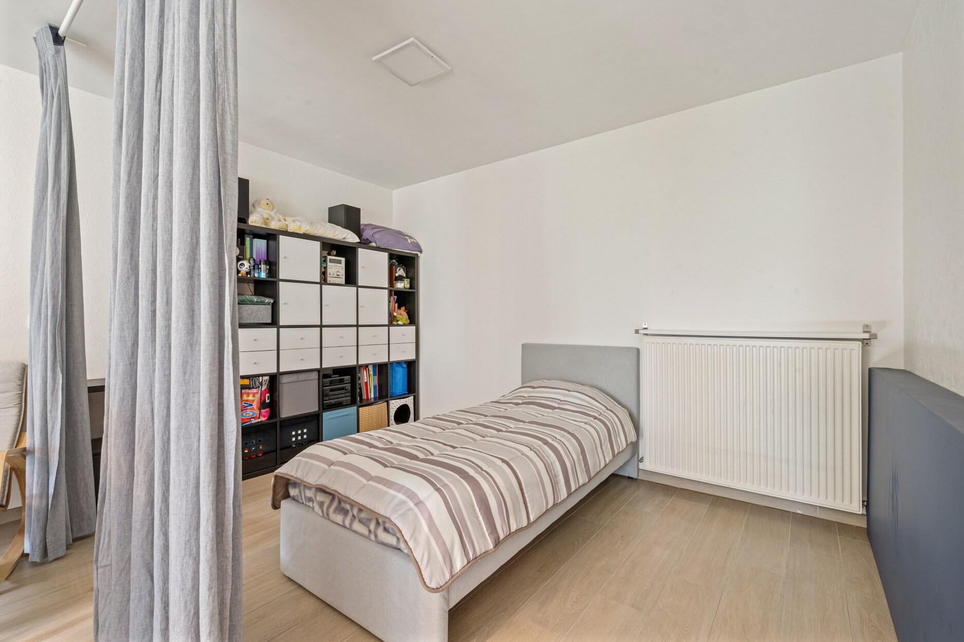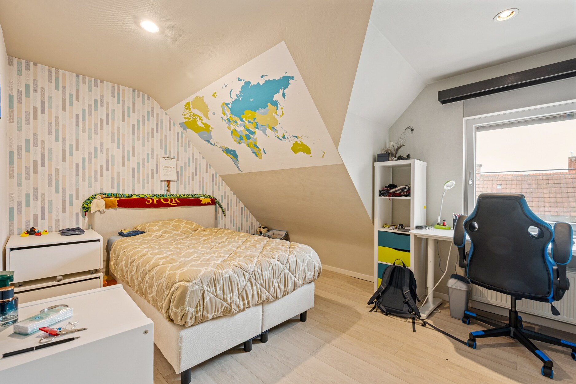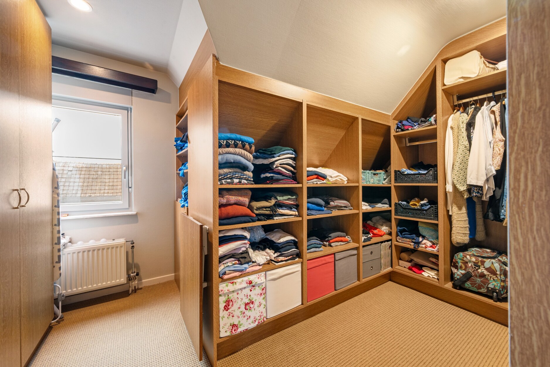 Op de tweede verdieping bevinden zich drie ruime slaapkamers, waarvan één ingericht als dressing met ingemaakte kasten, en een badkamer uitgerust met ligbad en douche. Via een vlizotrap bereikt u bovendien de geïsoleerde zolder, ideaal als extra bergruimte.