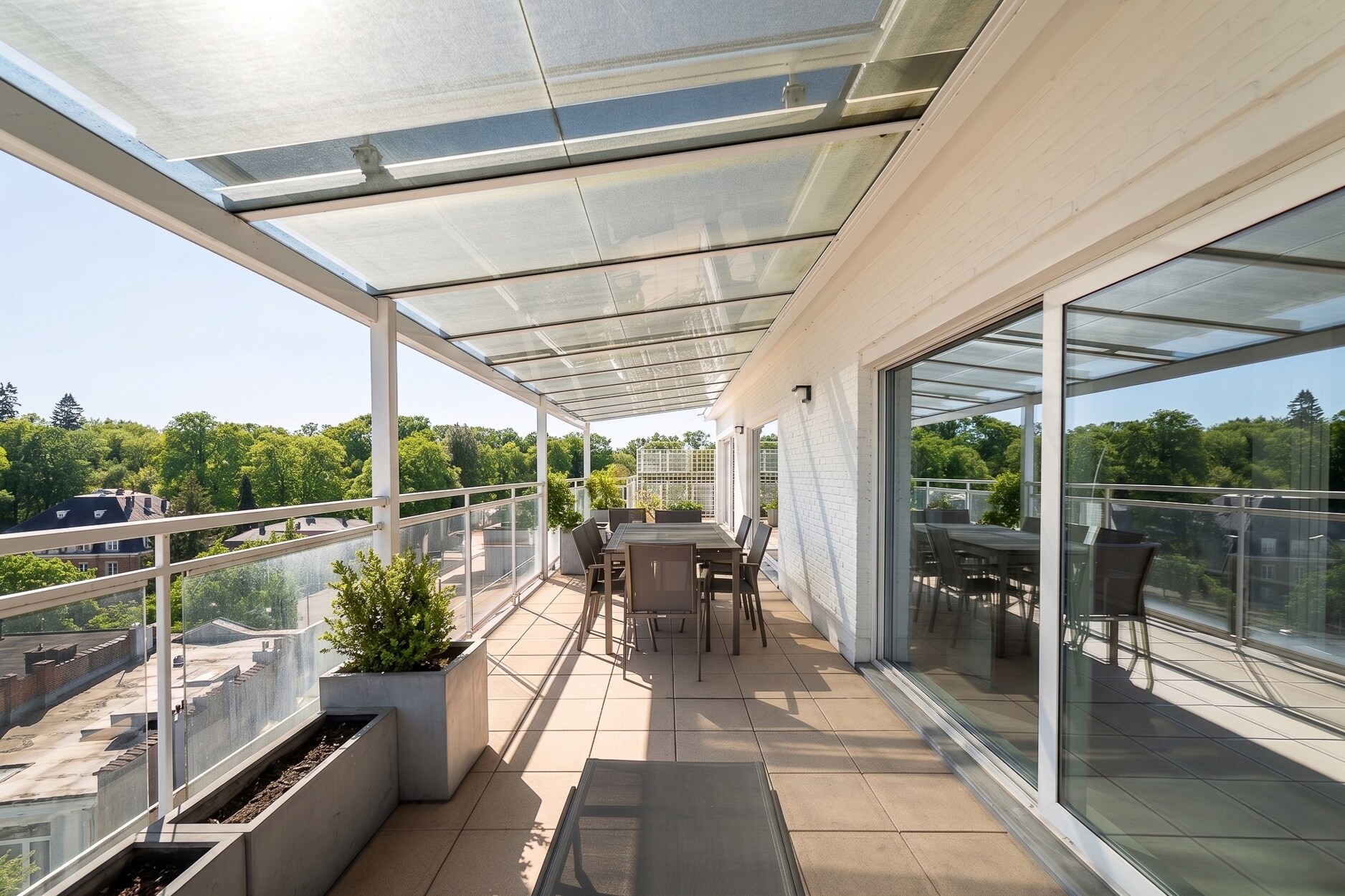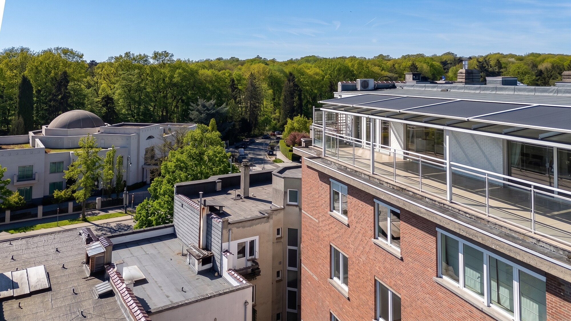 Gelegen in de onmiddellijke nabijheid van de Franklin Rooseveltlaan, met open zicht op het Ter Kamerenbos, duplex penthouse van ±330 m² op de 7e en 8e verdieping van een gebouw uit de jaren 60. Het geheel omvat 4 slaapkamers en meerdere leefruimtes.