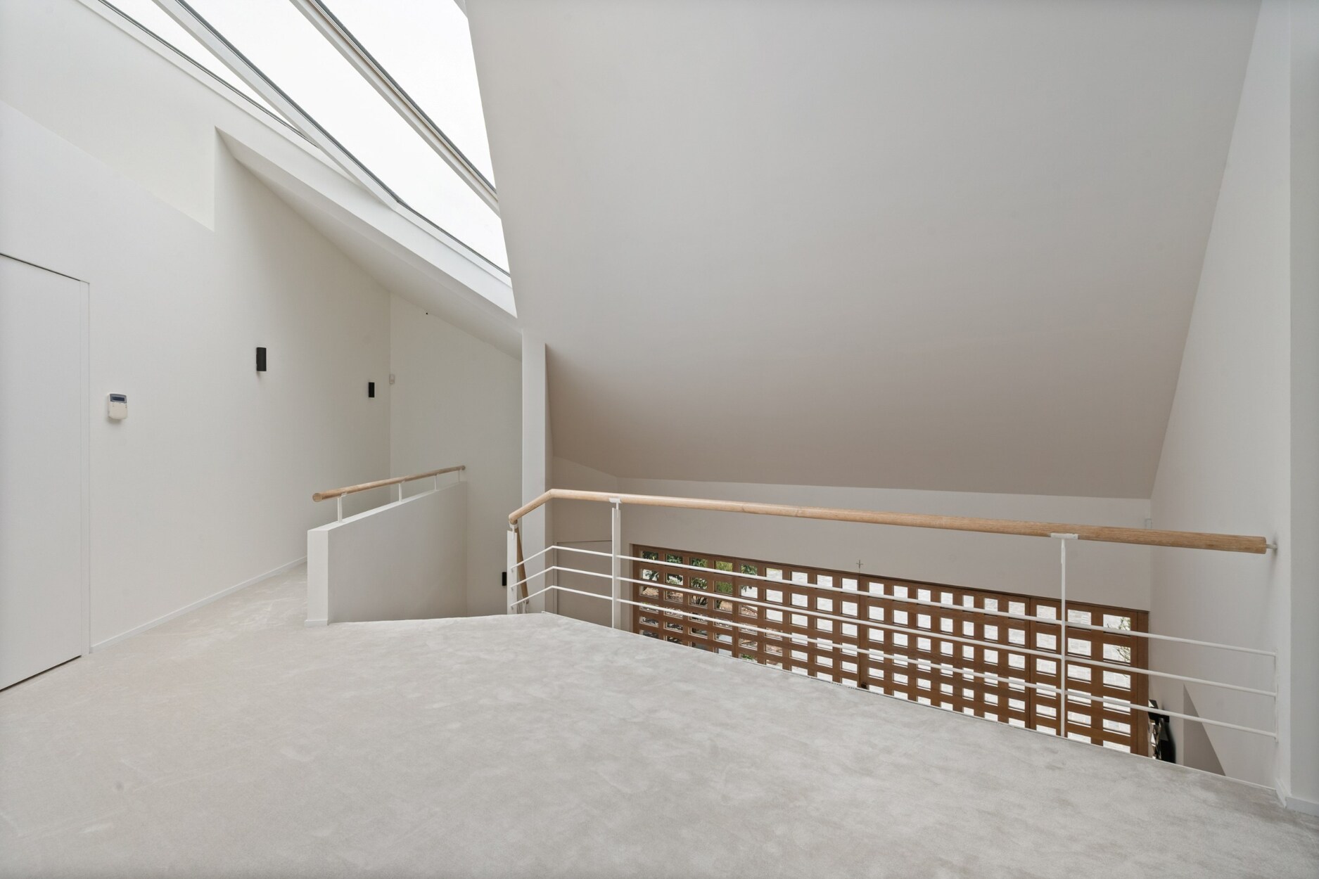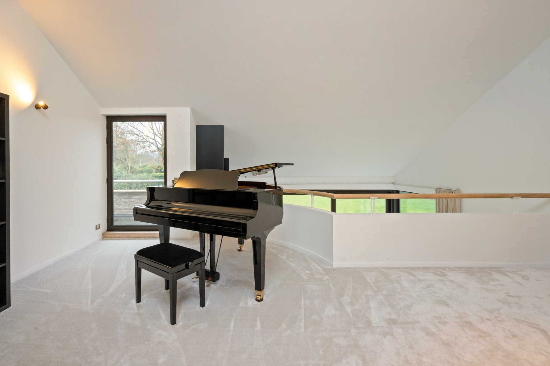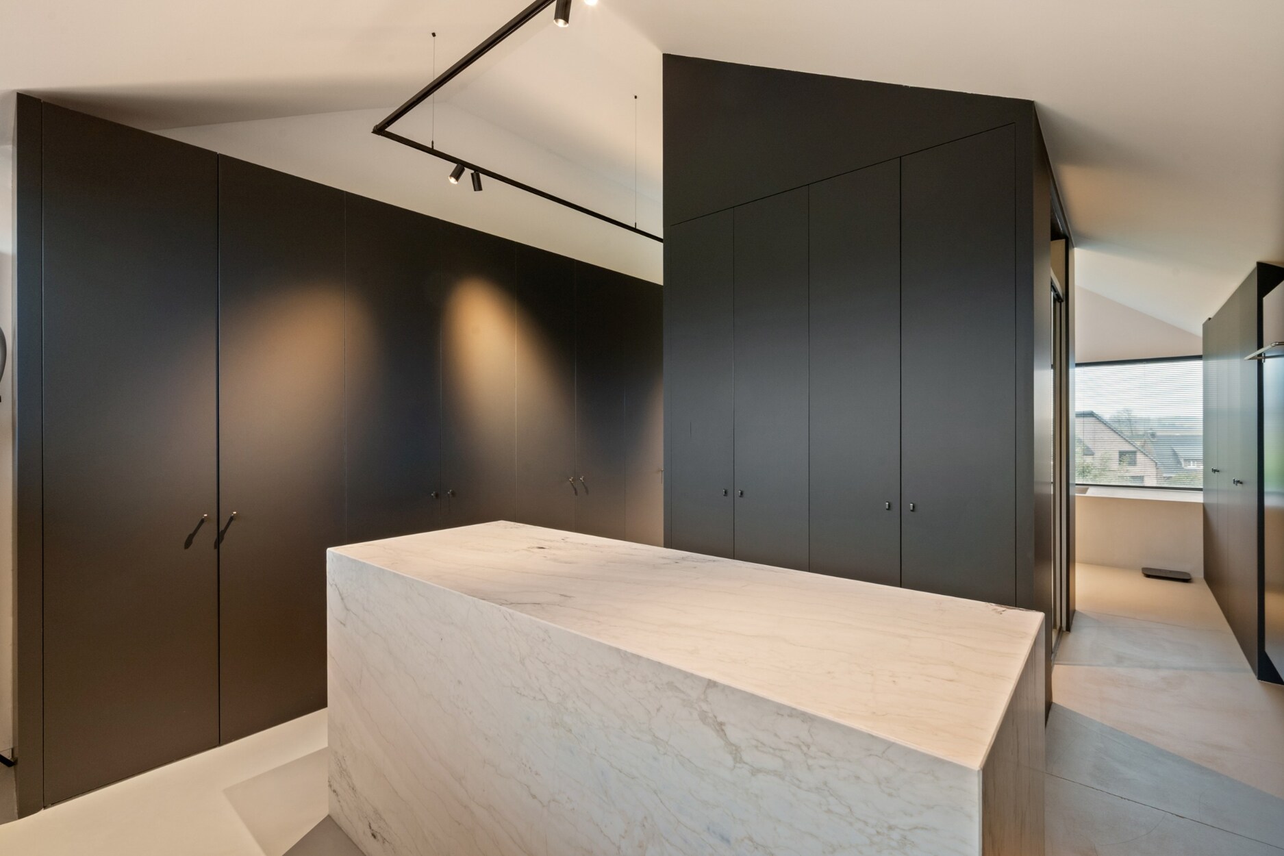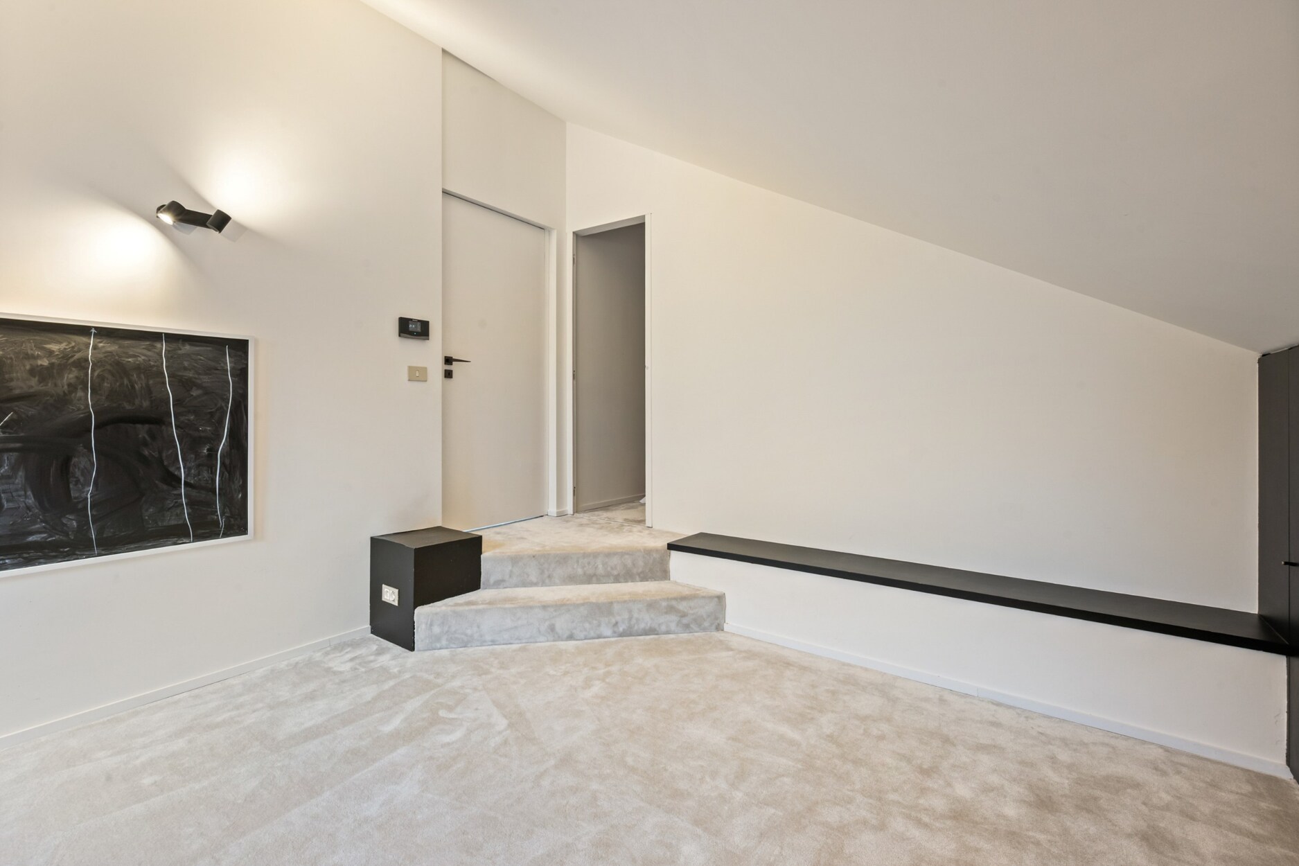 Op de verdieping bevindt zich het nachtgedeelte, bestaande uit een luxueuze master suite met dressing en ruime badkamer, aangevuld met meerdere bijkomende slaapkamers, diverse badkamers en een balkon met zicht op de tuin. Iedere kamer straalt rust en licht uit, met oog voor comfort en privacy.