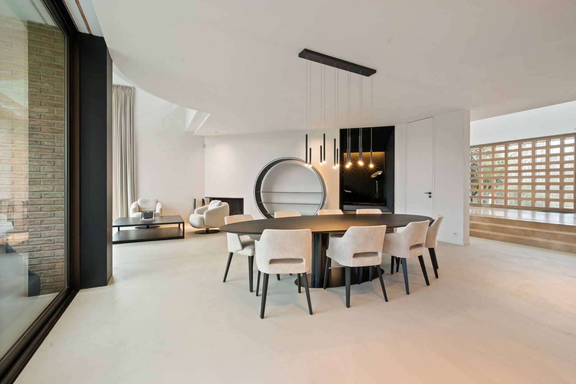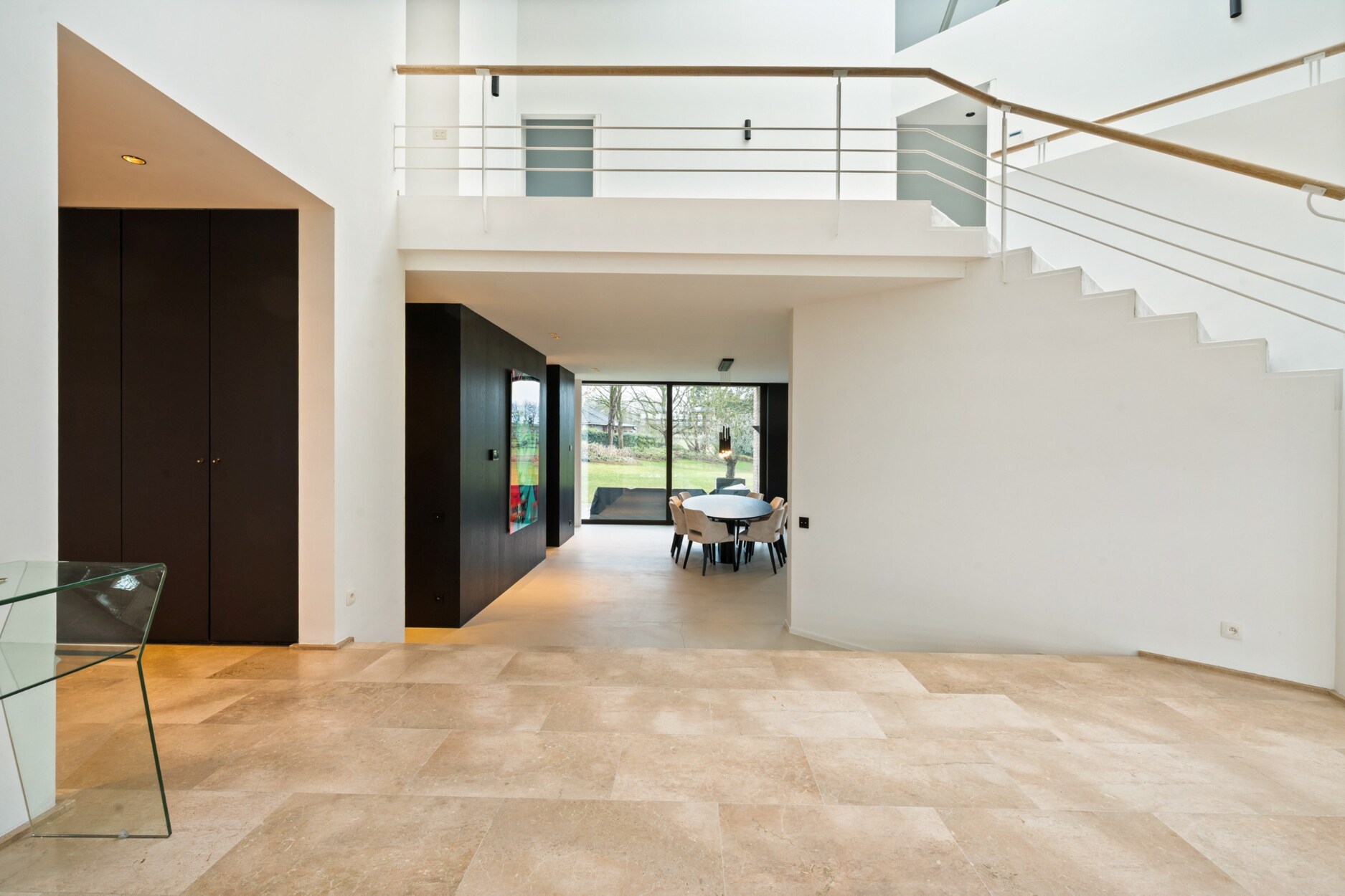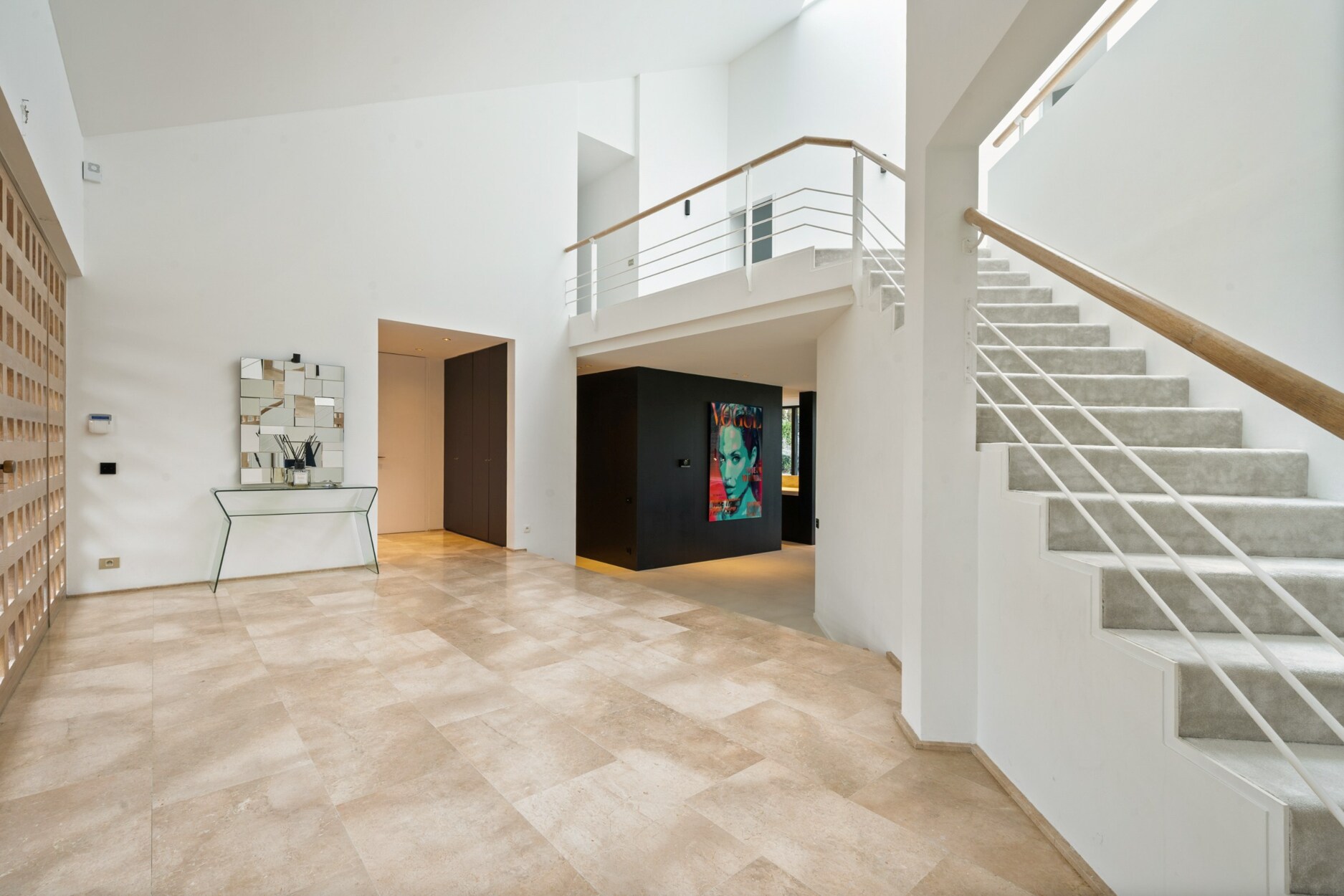 De villa werd recent met hoogwaardige materialen en een moderne visie gerenoveerd, waardoor elk detail vandaag het niveau van hedendaagse luxe haalt. Bij binnenkomst in de ruime inkomhal vallen de verfijnde afwerking en het open karakter meteen op. De grote leefruimtes baden in het licht dankzij royale raampartijen en sluiten naadloos aan op de tuin en het zwembad. De hypermoderne open keuken vormt het hart van de woning en integreert perfect met de leefruimte. Een aparte family room, bureauruimte, praktische wasplaats, diverse bergruimtes en een ruime inpandige garage maken het gelijkvloers compleet en bijzonder functioneel.