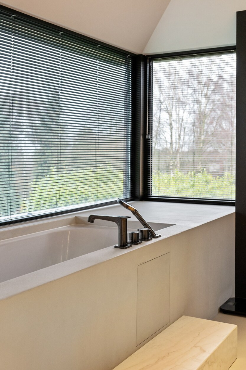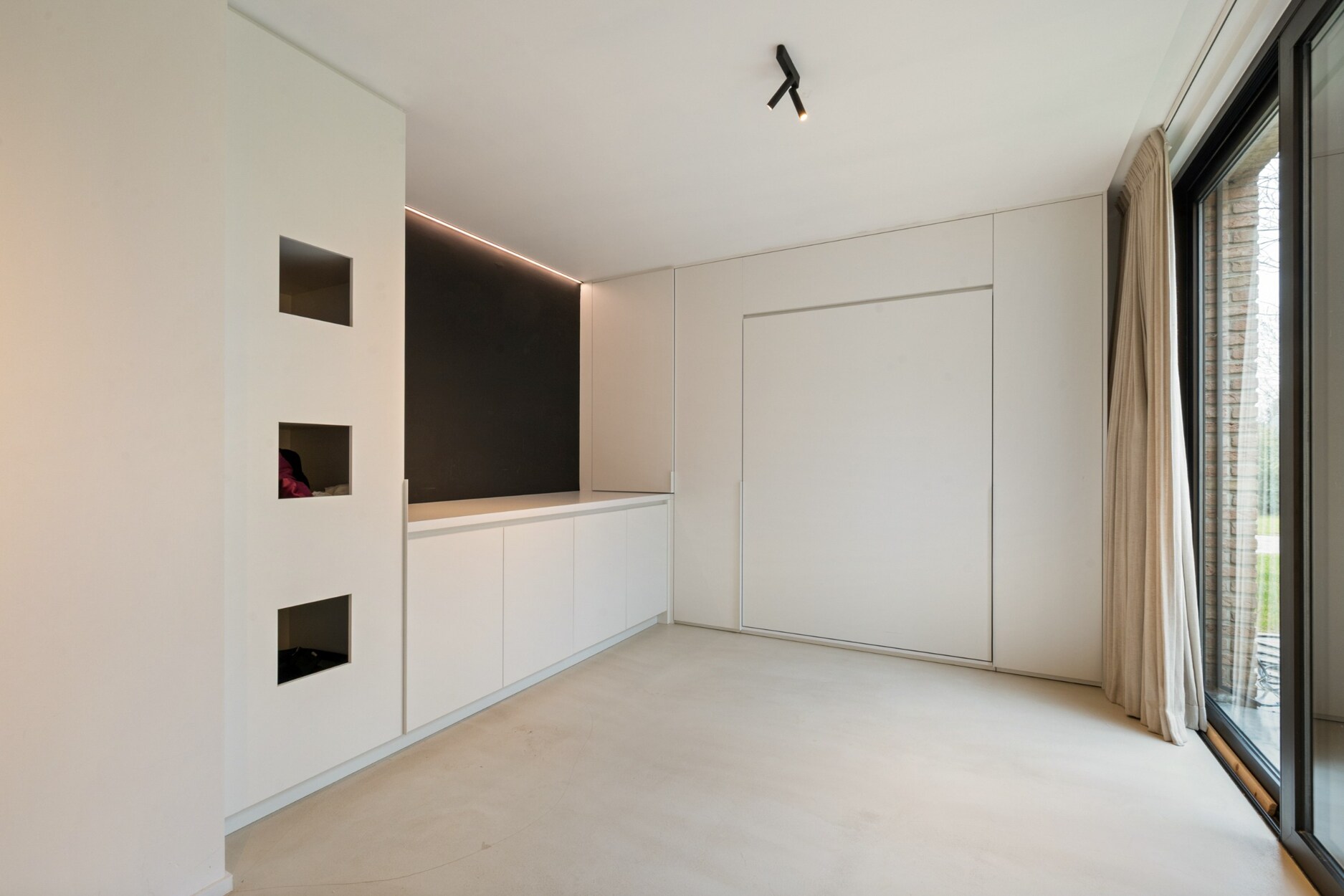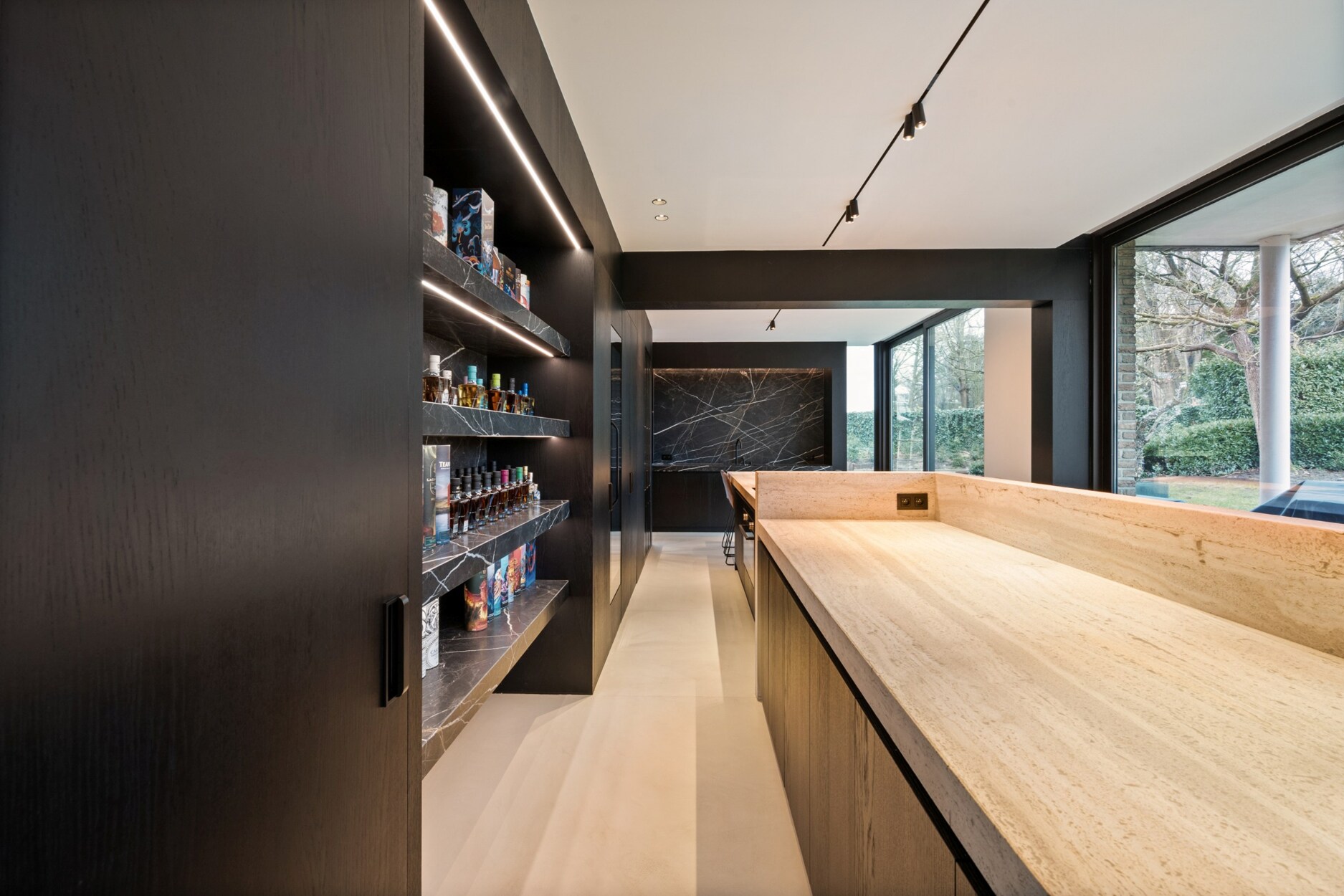 De villa werd recent met hoogwaardige materialen en een moderne visie gerenoveerd, waardoor elk detail vandaag het niveau van hedendaagse luxe haalt. Bij binnenkomst in de ruime inkomhal vallen de verfijnde afwerking en het open karakter meteen op. De grote leefruimtes baden in het licht dankzij royale raampartijen en sluiten naadloos aan op de tuin en het zwembad. De hypermoderne open keuken vormt het hart van de woning en integreert perfect met de leefruimte. Een aparte family room, bureauruimte, praktische wasplaats, diverse bergruimtes en een ruime inpandige garage maken het gelijkvloers compleet en bijzonder functioneel.