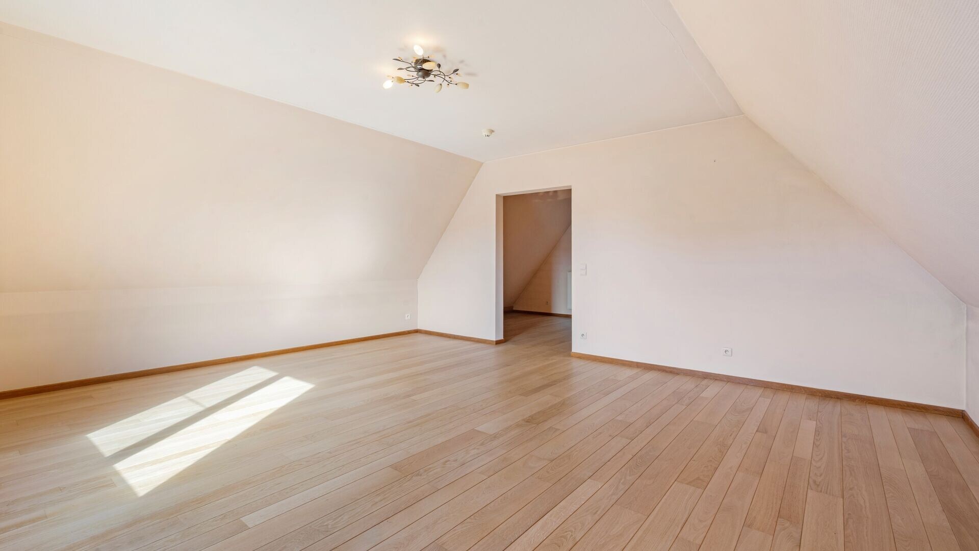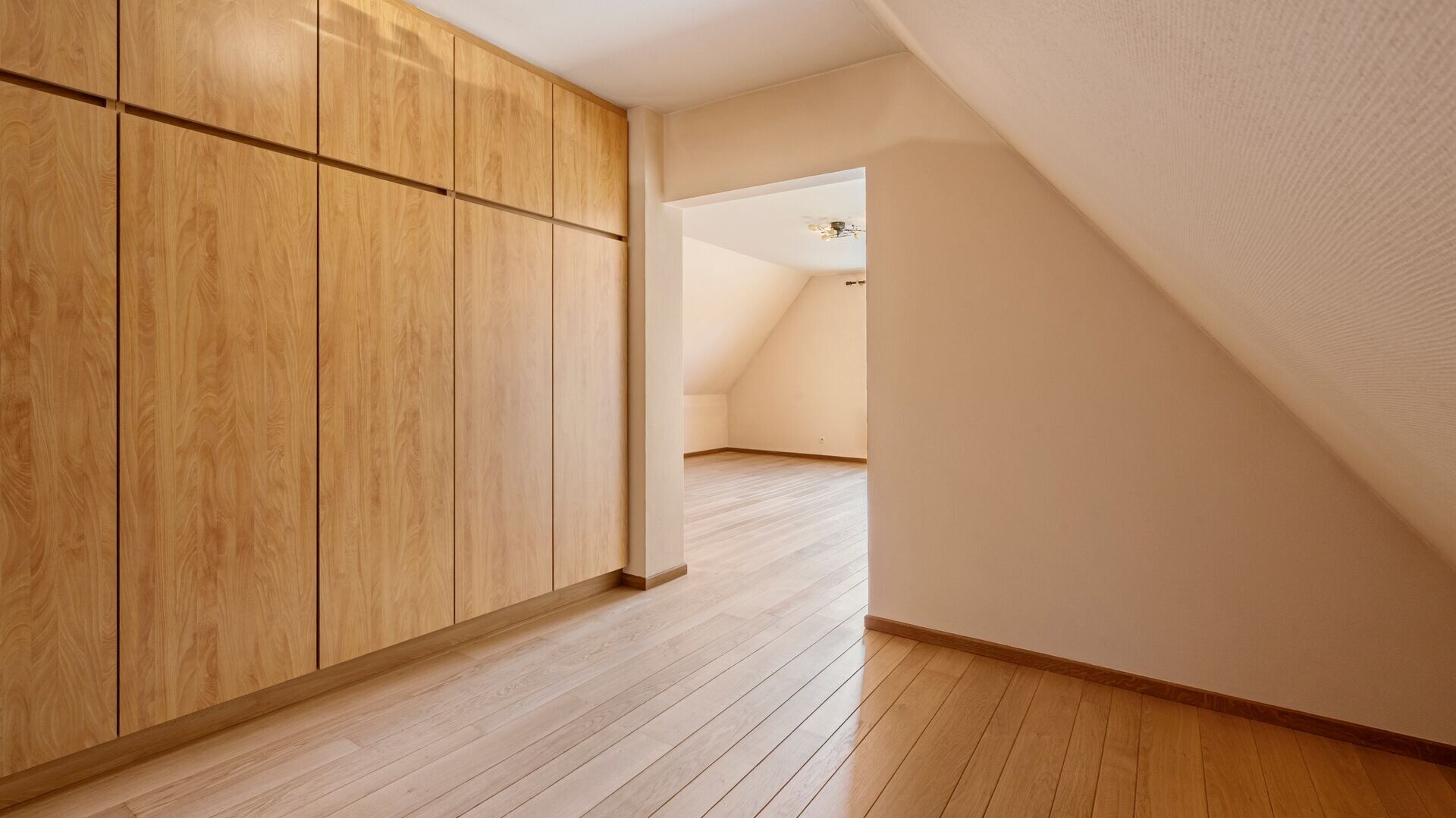 Bij het betreden van de woning wordt u meteen verwelkomd door een warme, authentieke sfeer, versterkt door de prachtige eiken beplankte vloeren en degelijke afwerking. De woning beschikt over vier royale slaapkamers, ideaal voor gezinnen die waarde hechten aan ruimte en privacy, of voor wie extra kamers wenst voor een bureau, dressing of hobbyruimte.