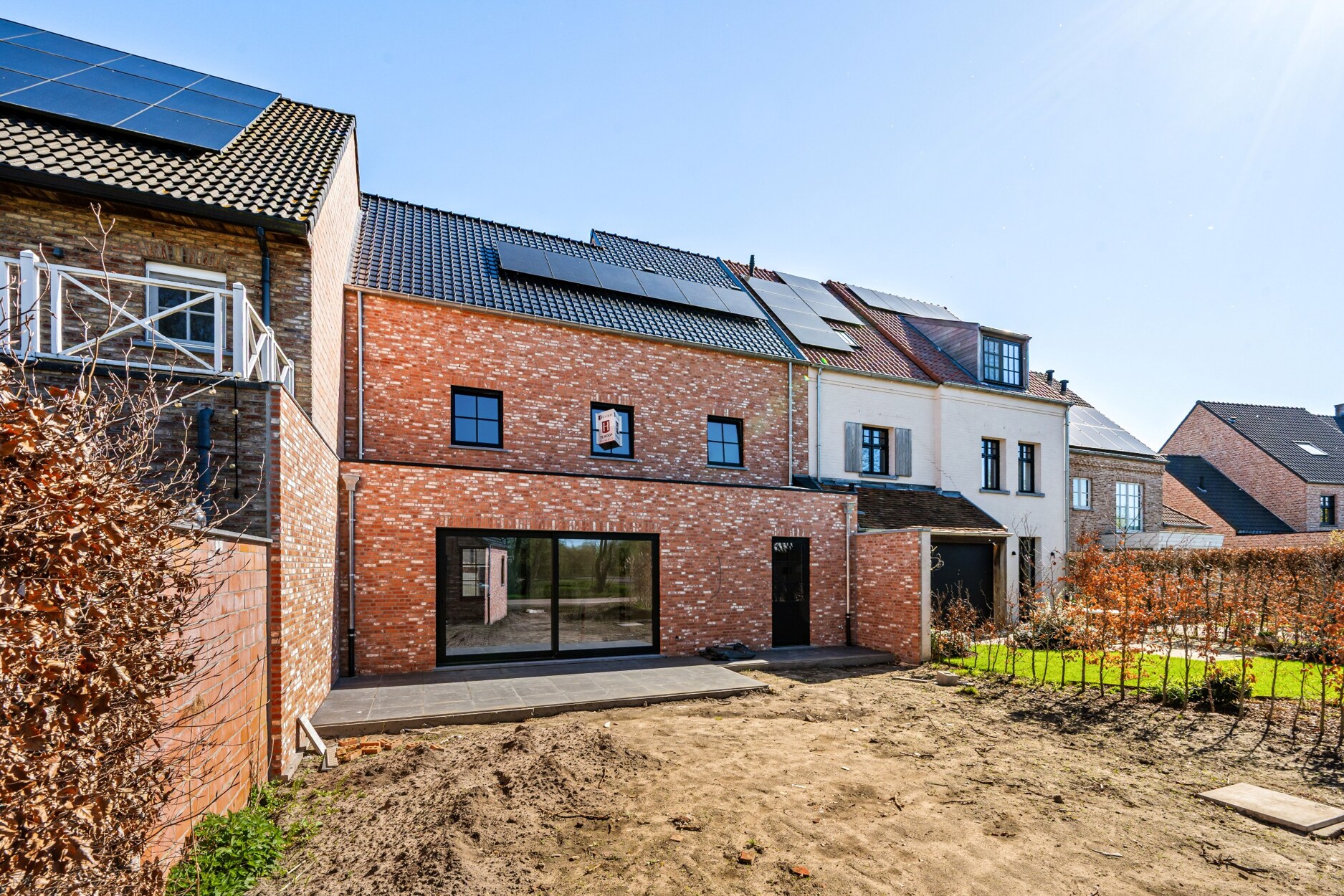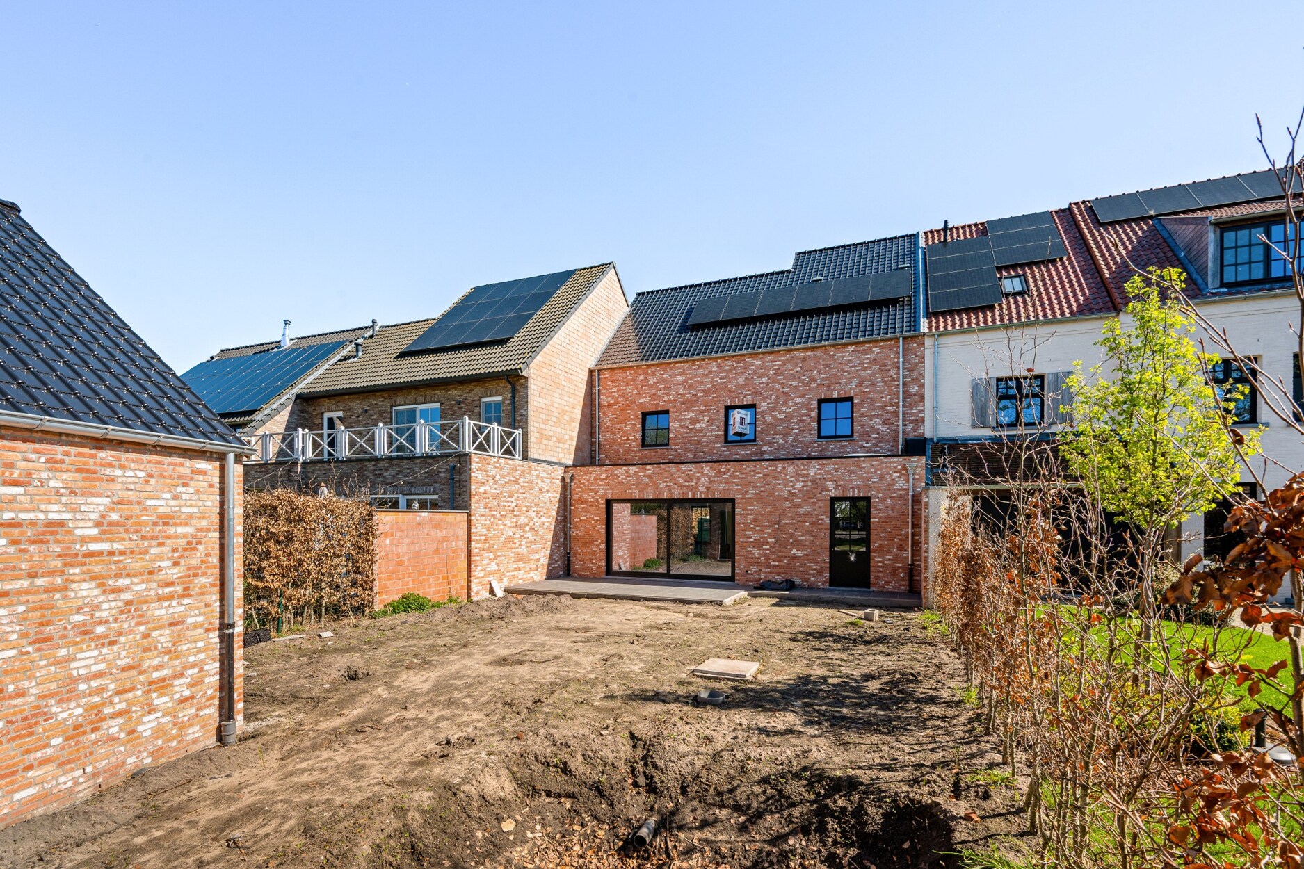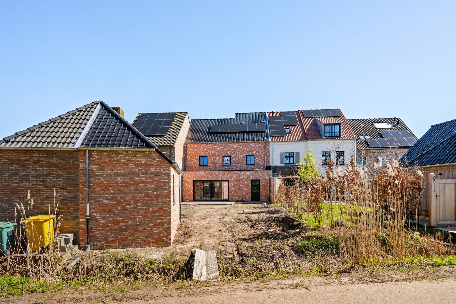 De tuin wordt ingezaaid met gras, aangeplant met siergrassen en de oprit en het terras worden volledig aangelegd. Zeer ruime berging/ tuinhuis achteraan op het perceel.