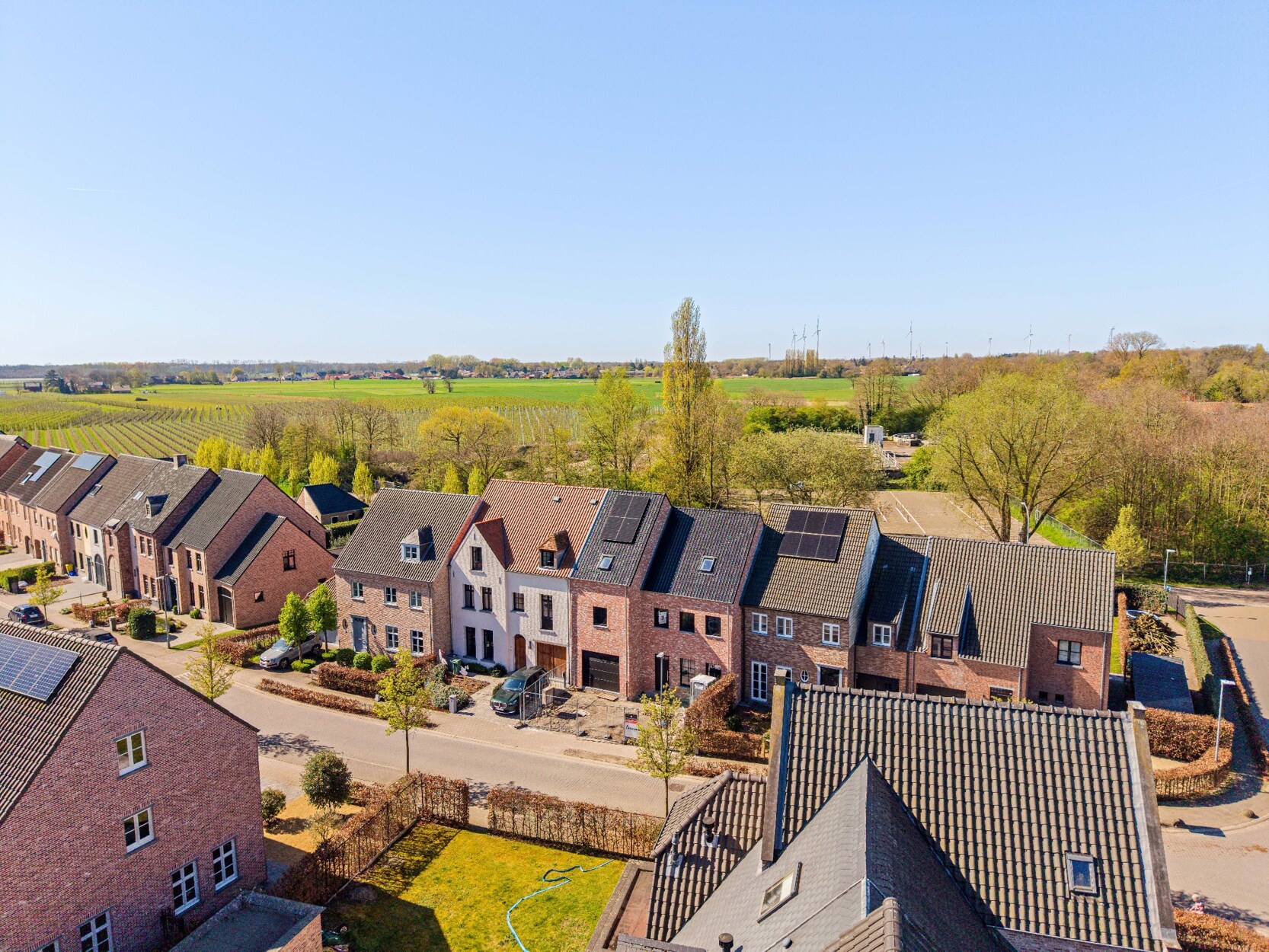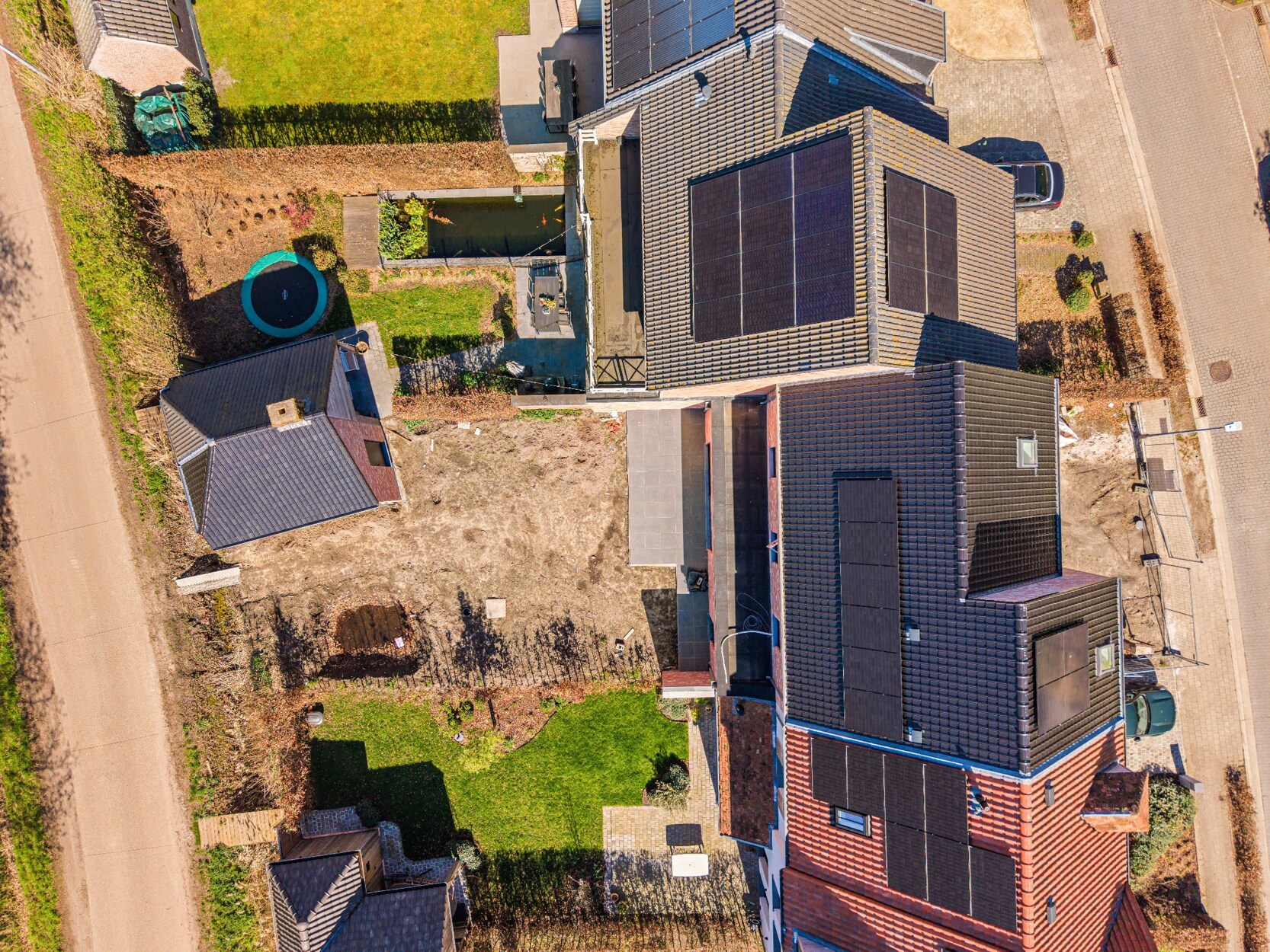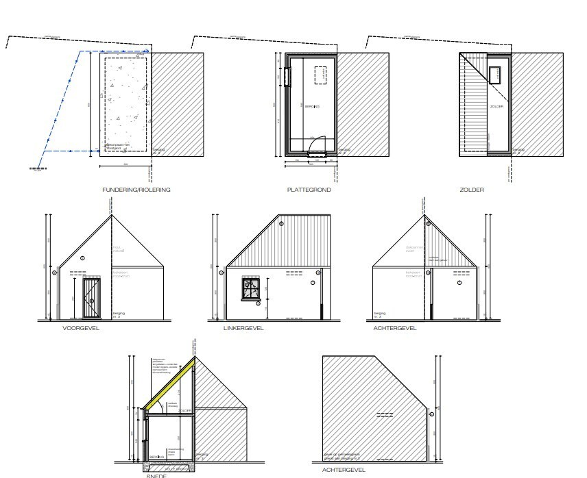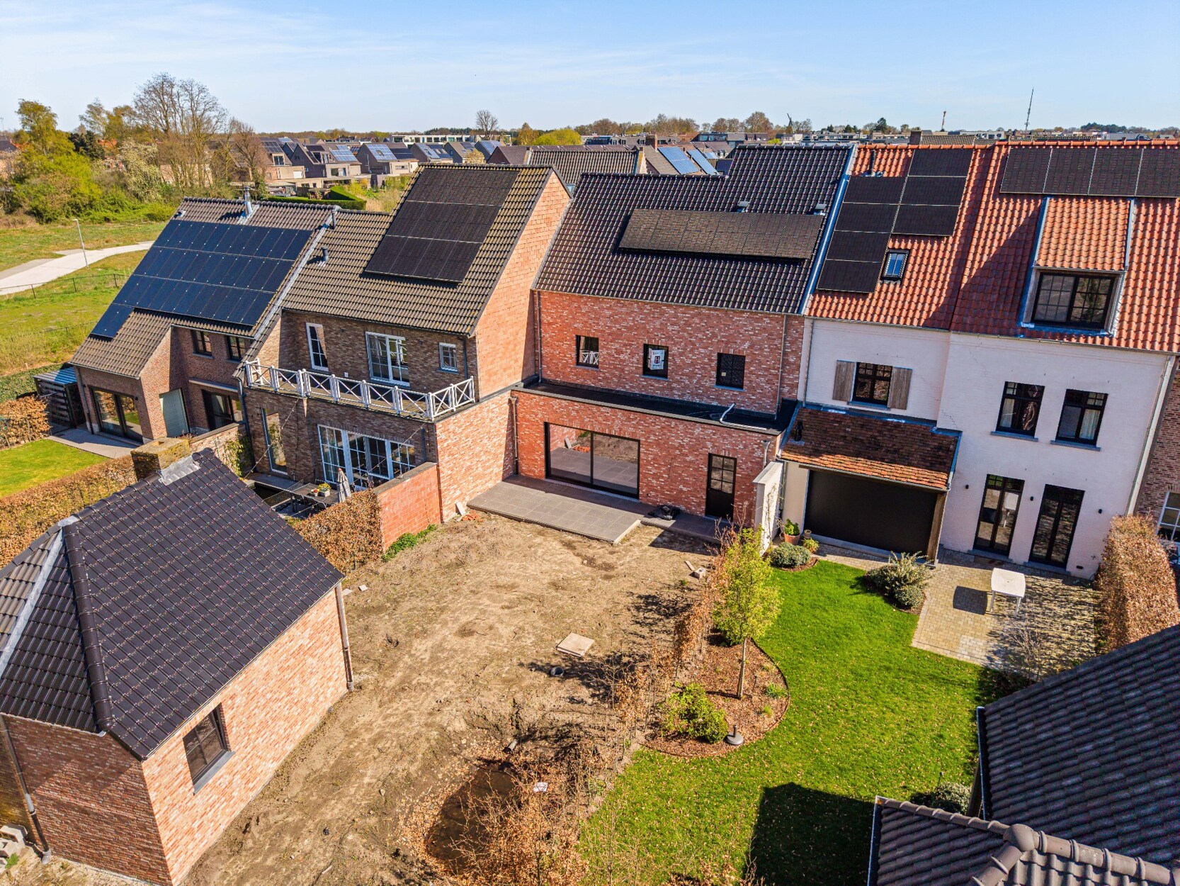 De tuin wordt ingezaaid met gras, aangeplant met siergrassen en de oprit en het terras worden volledig aangelegd. Zeer ruime berging/ tuinhuis achteraan op het perceel.