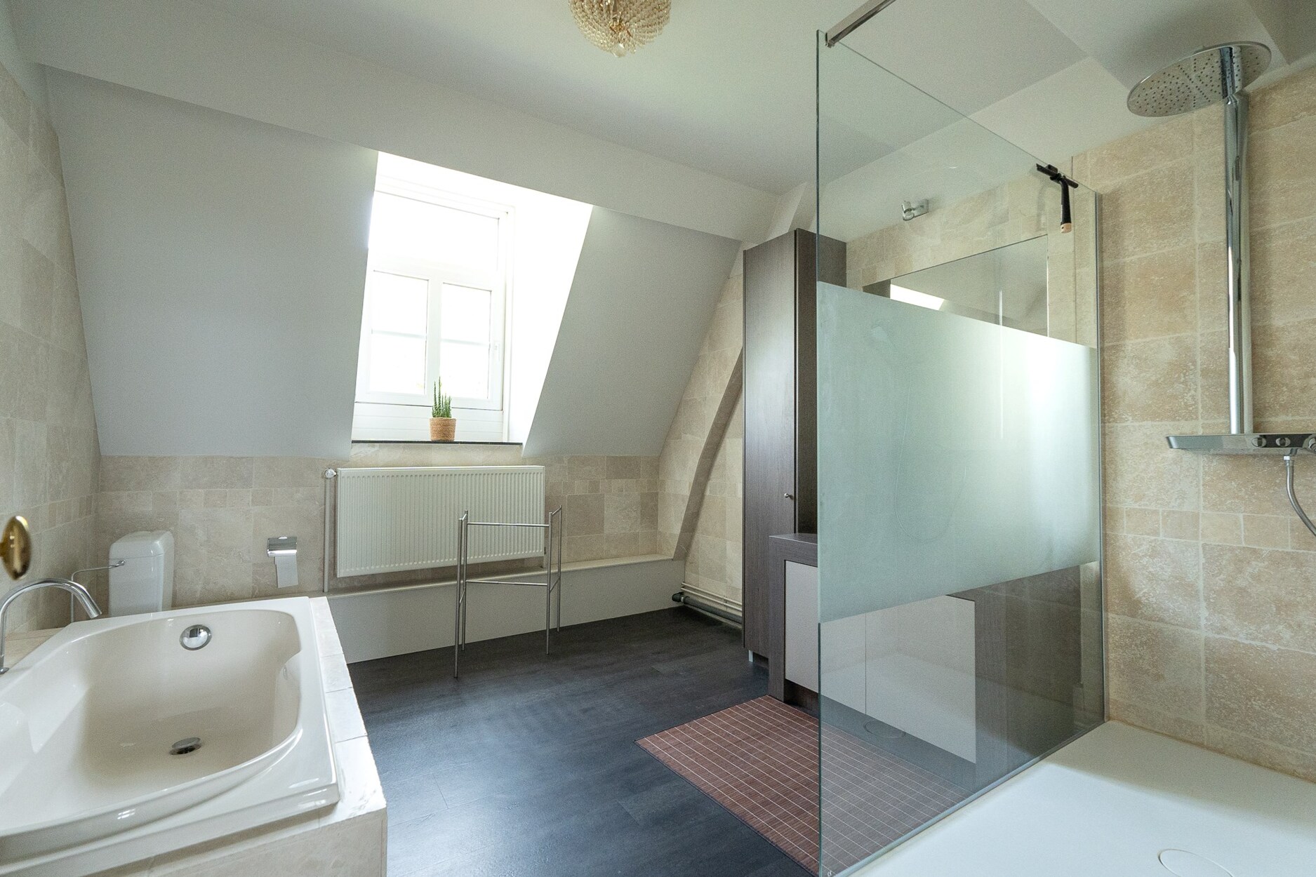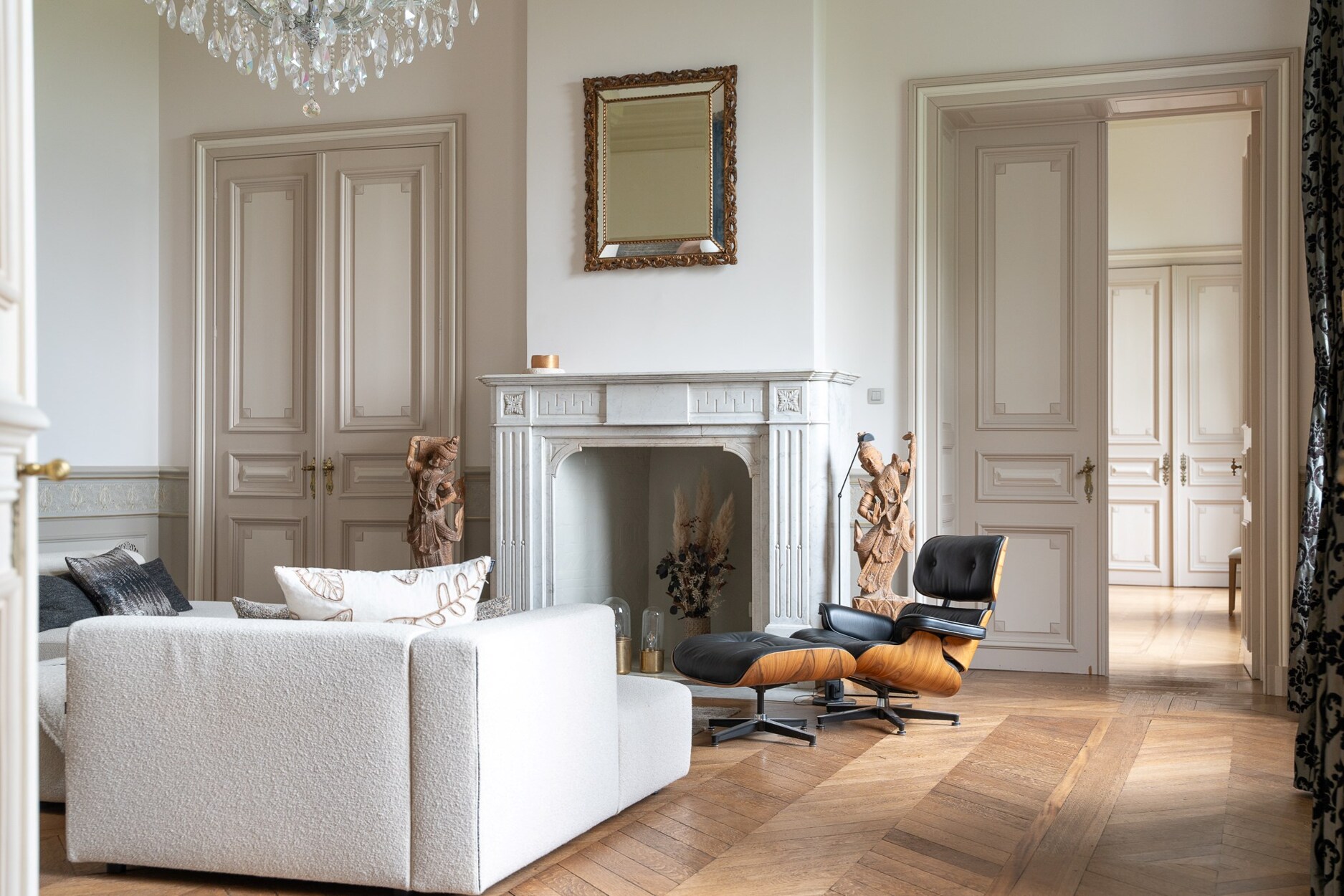 De woning biedt ± 750 m² bewoonbare oppervlakte, waar elk detail is ontworpen om modern comfort te combineren met historische allure: