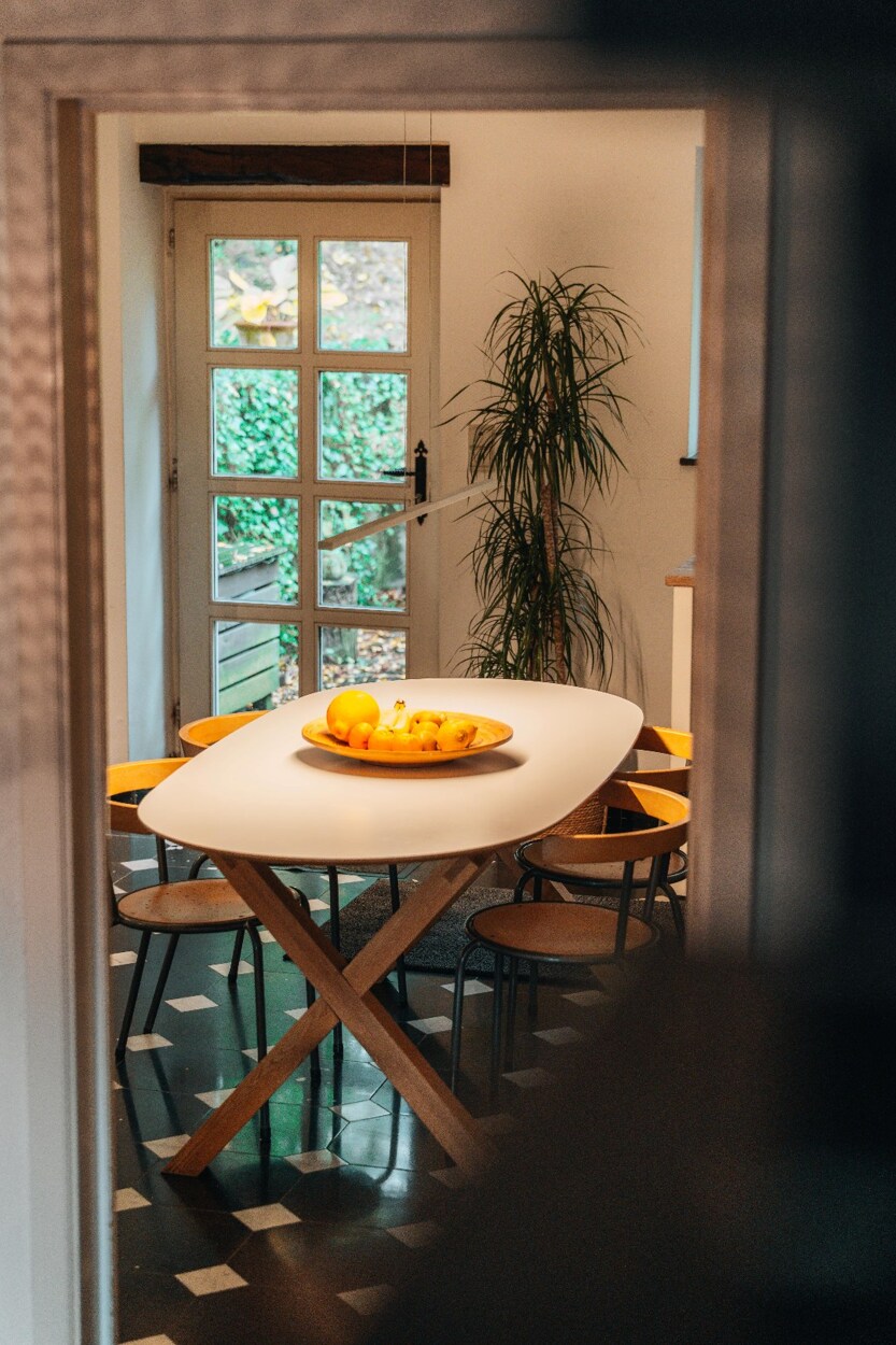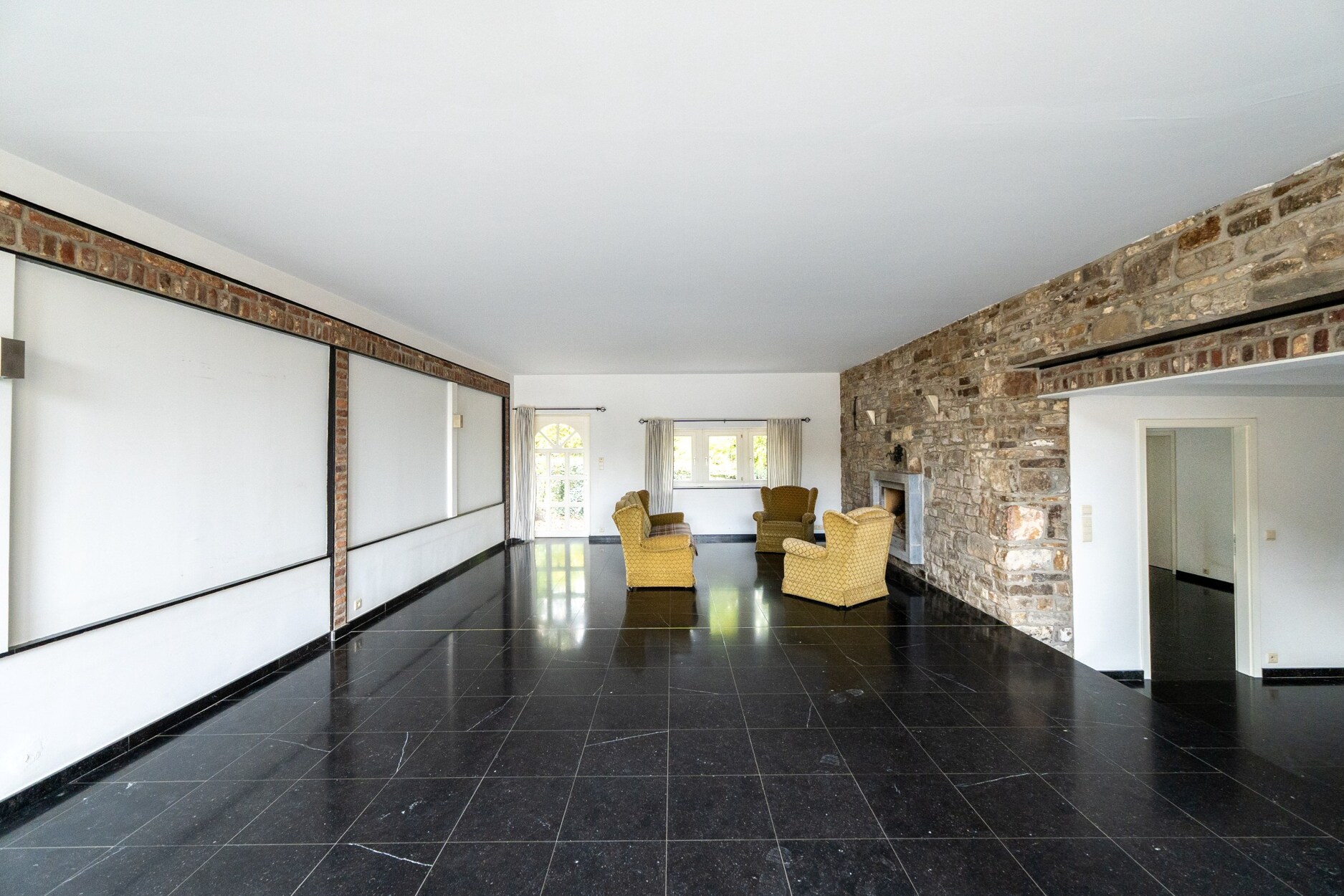 Achter de historische gevel herbergt het gebouw momenteel vijf woonentiteiten met een jaarlijks huurrendement van ongeveer €55.000. Het geheel kan eenvoudig worden omgevormd tot één ruime gezinswoning of geschikt worden gemaakt voor een representatieve beroepsactiviteit. De oorspronkelijke architectonische elementen — natuursteen, gebinte, schrijnwerk en royale volumes — verlenen het huis een uitzonderlijke erfgoedwaarde. Het open uitzicht over het omliggende platteland roept een gevoel van sereniteit en contemplatie op.