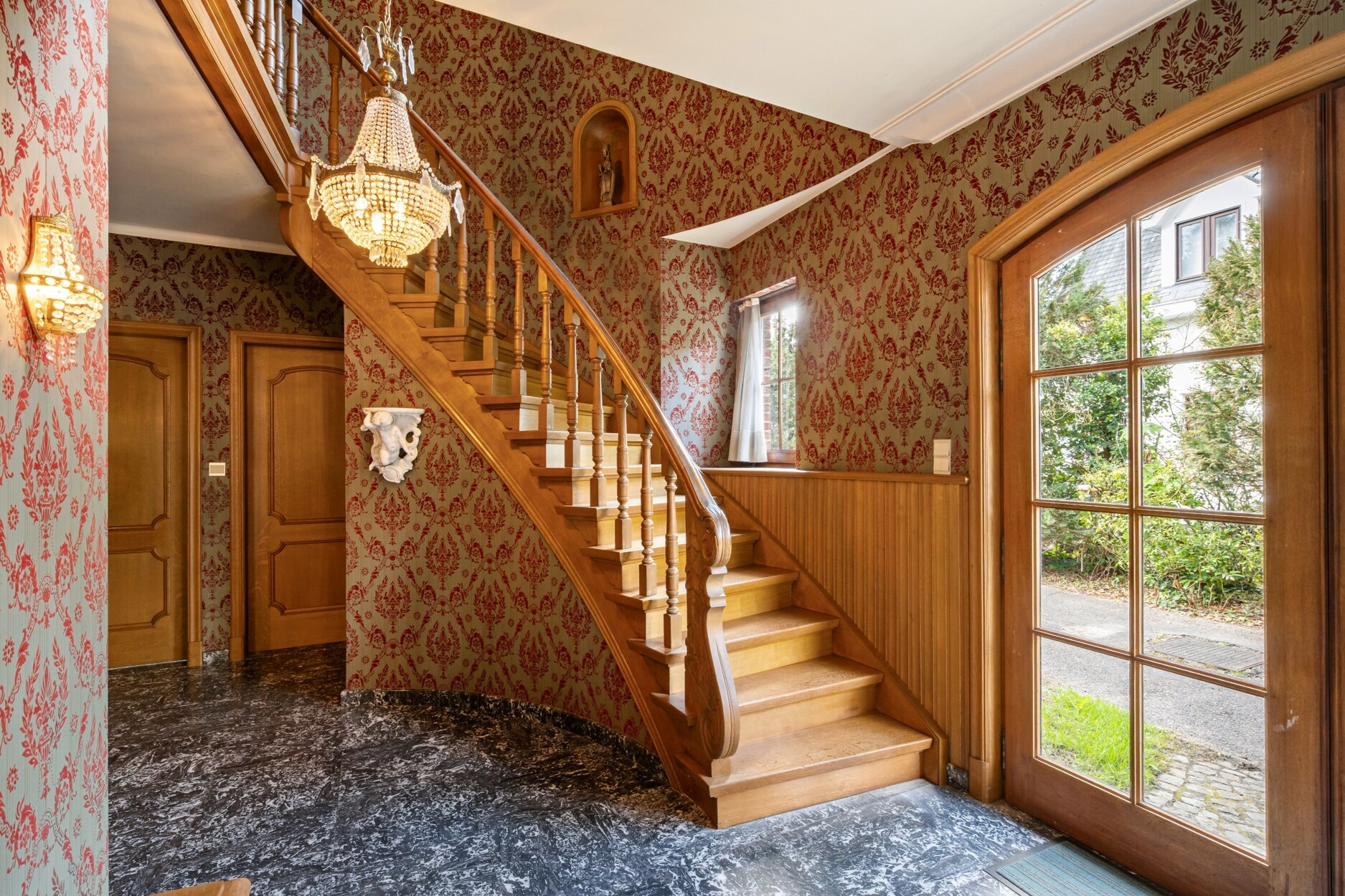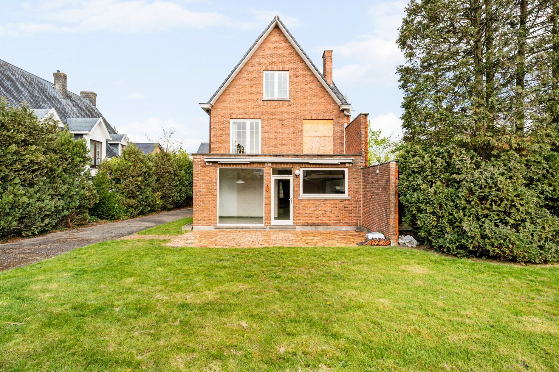 Bij het betreden van de woning kom je in een grote inkomhal die toegang geeft tot de lichtrijke leefruimte. De leefkeuken, die tal van mogelijkheden biedt om te moderniseren tot een eigentijdse keuken, is naar de tuin georiënteerd en beschikt over veel natuurlijk licht. Verder is er op het gelijkvloers een aparte bureauruimte, ideaal voor thuiswerk, een gastentoilet en een praktische berging.