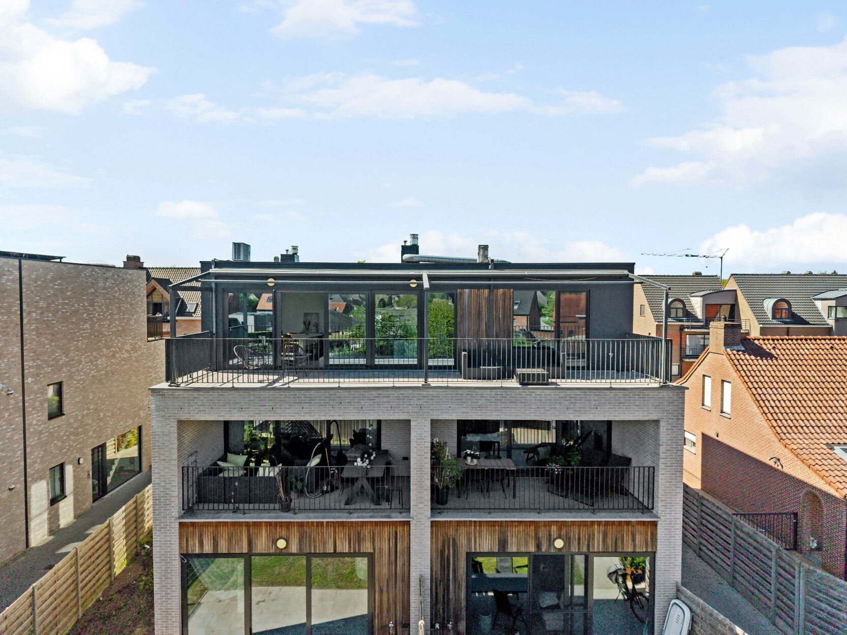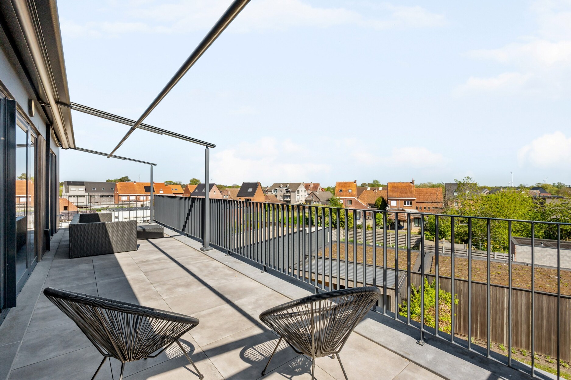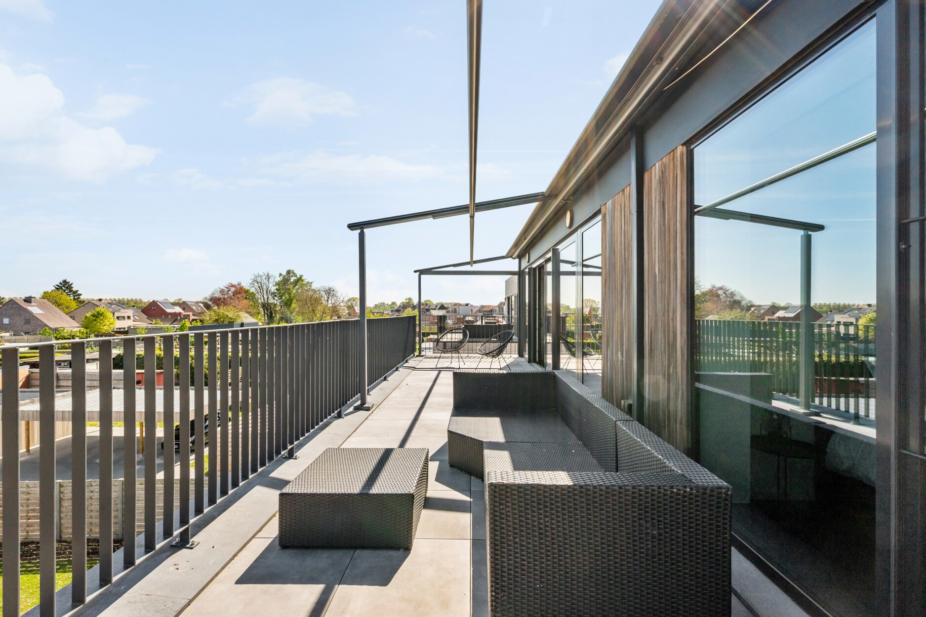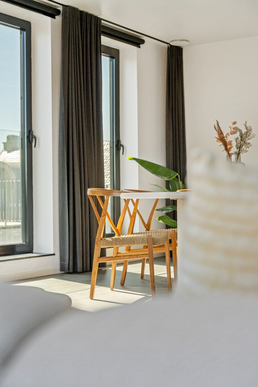 Twee ruime terrassen aan de voor- en achterzijde van het appartement.