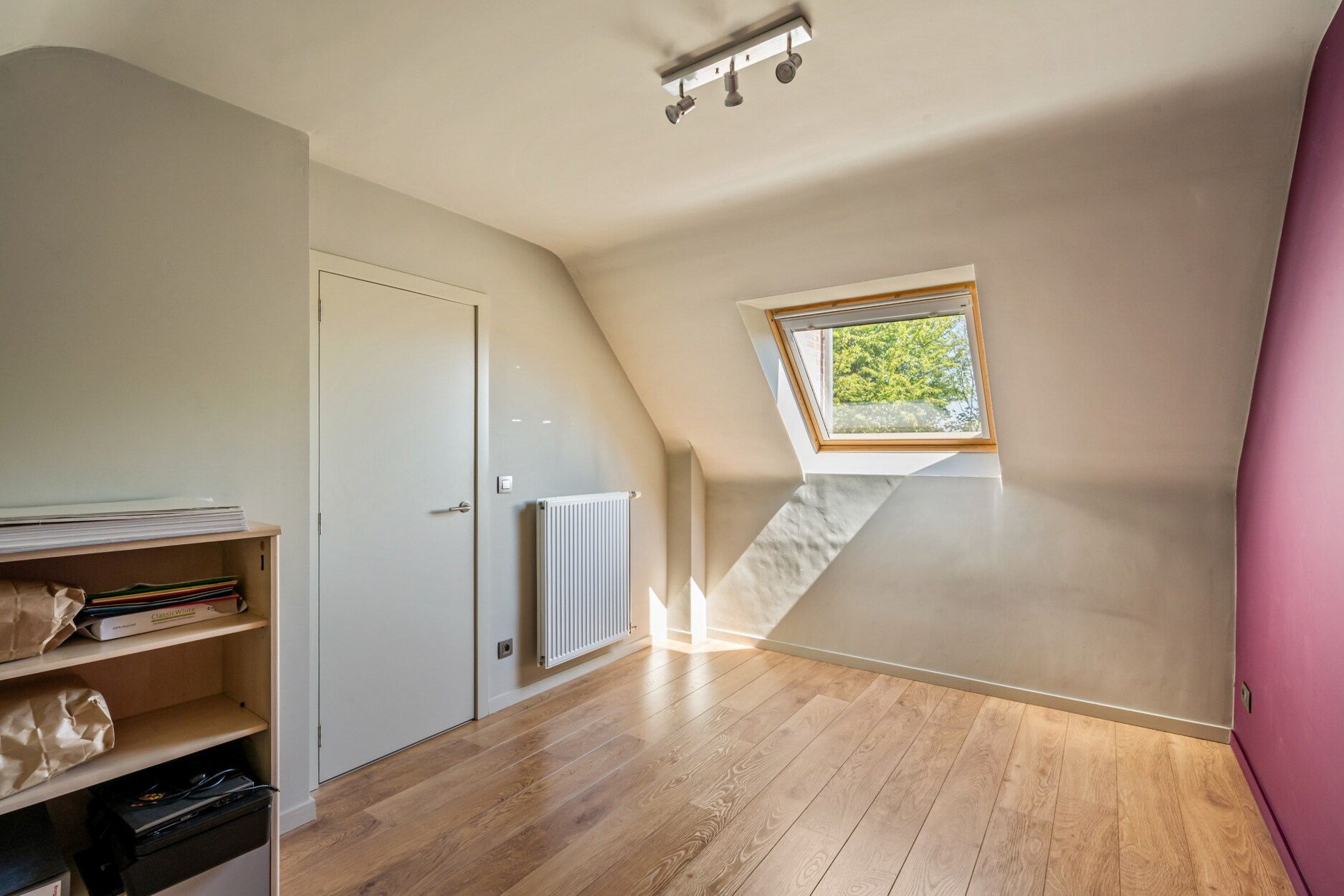 De zolderverdieping, bereikbaar via een vaste trap, biedt nog tal van mogelijkheden. Hier bevinden zich de verwarmingsketel en ventilatie-unit, en de ruimte kan verder afgewerkt worden als extra slaapkamers, hobbyruimte of bureau.