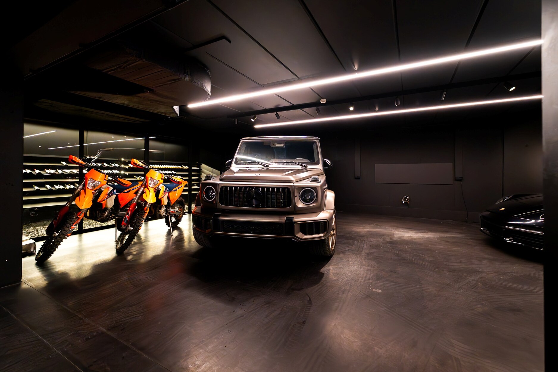 De kelder omvat een garage voor 4 voertuigen, een voorraadkamer, technische ruimtes en een beveiligde parkeerplaats voor zes auto's.