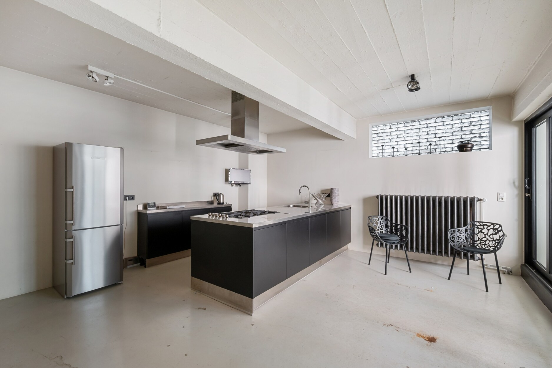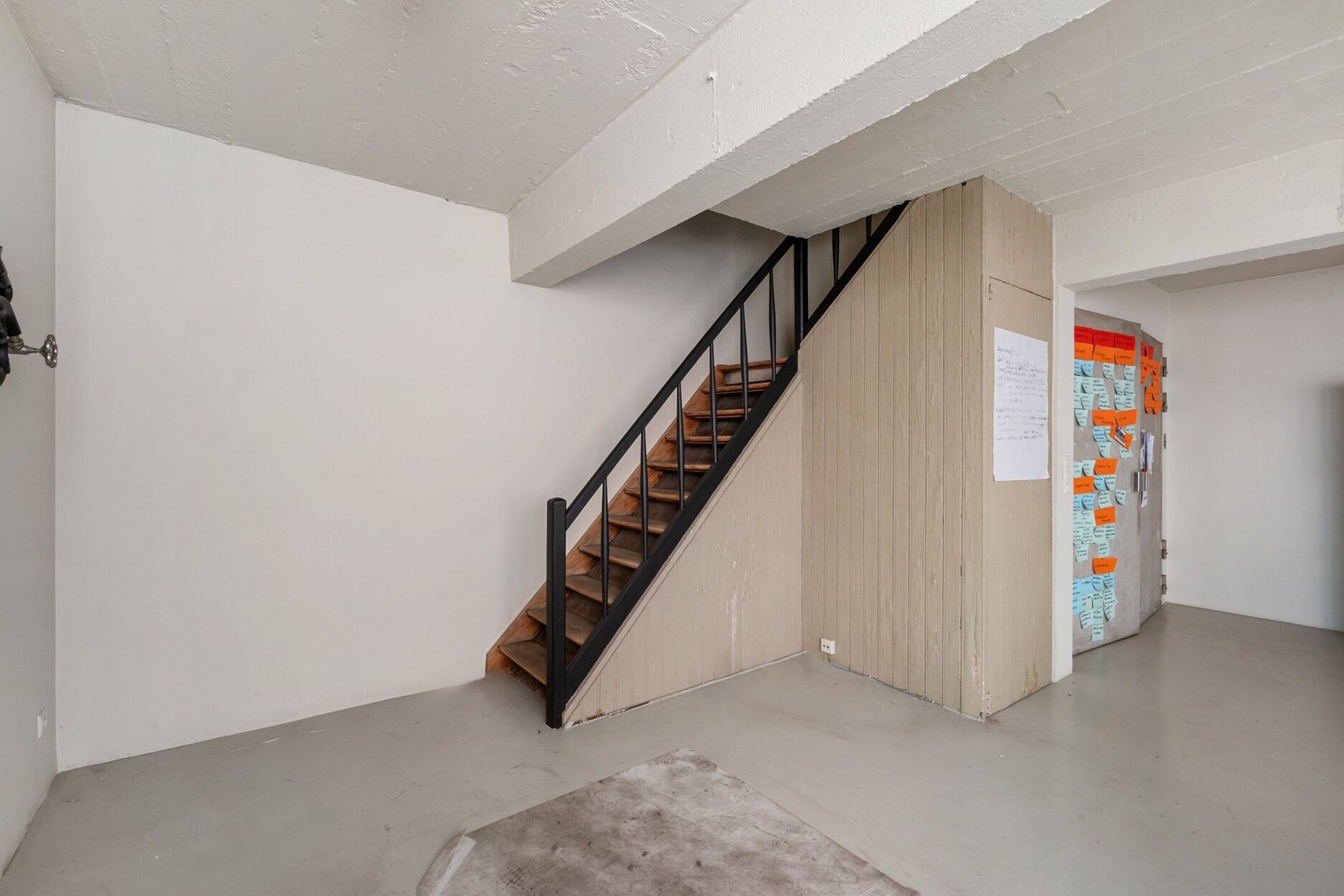 Bij het betreden van het appartement komen we in de inkomhal met gastentoilet en praktische bergruimte. De 1e verd. is vandaag ingericht als bureau, maar leent zich perfect tot het creëren van een volwaardige en ruime slaapkamer. Een bijzonder element is de authentieke goederenlift, een knipoog naar het industriële verleden van het gebouw als pianofabriek. De aanwezige technieken bieden hier bovendien potentieel voor een extra badkamer.