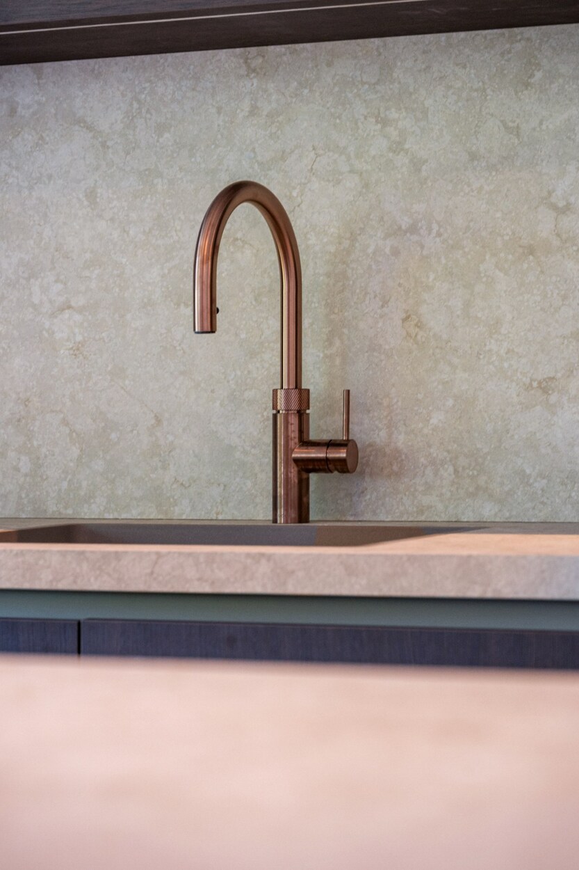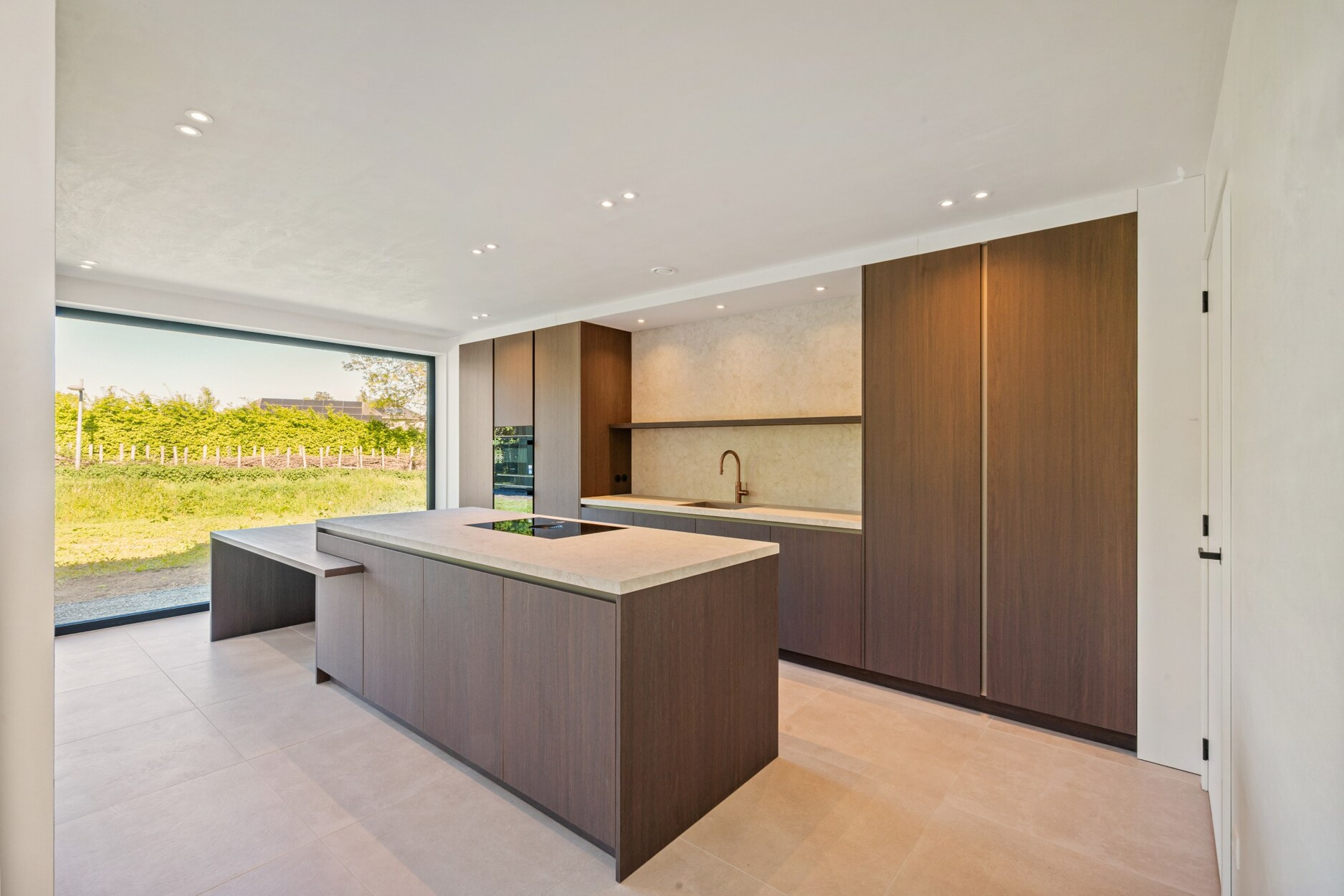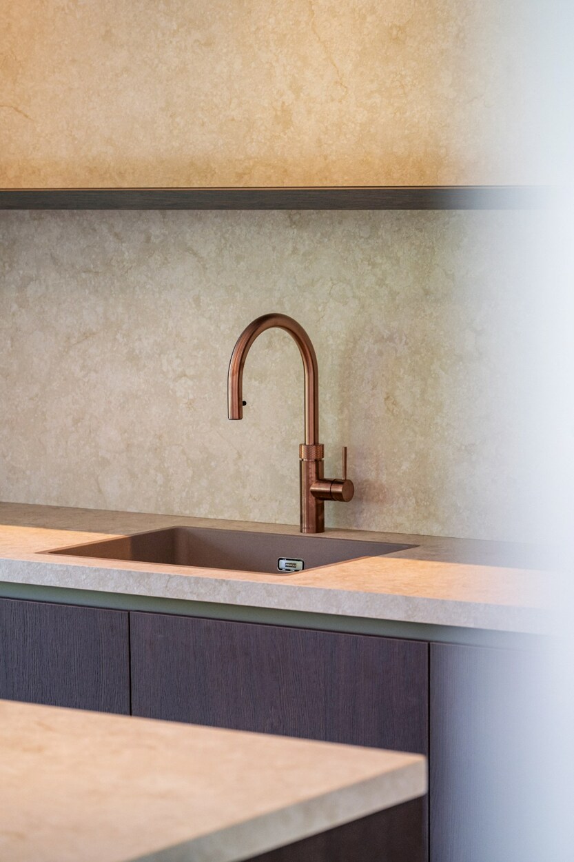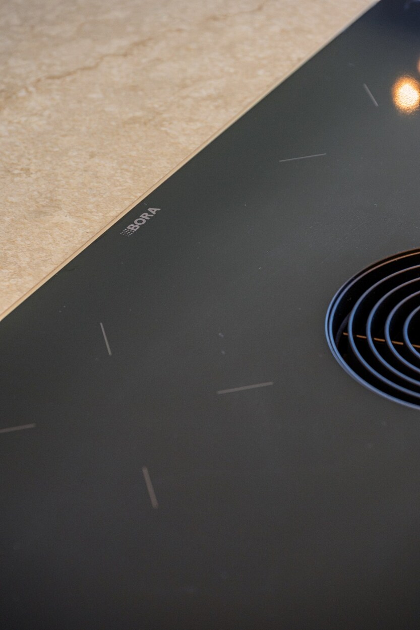 De open keuken is luxueus uitgerust met onder meer een Quooker, BORA-kookplaat, keramisch werkblad en een royaal kookeiland. Aansluitend bevindt zich een praktische berging.