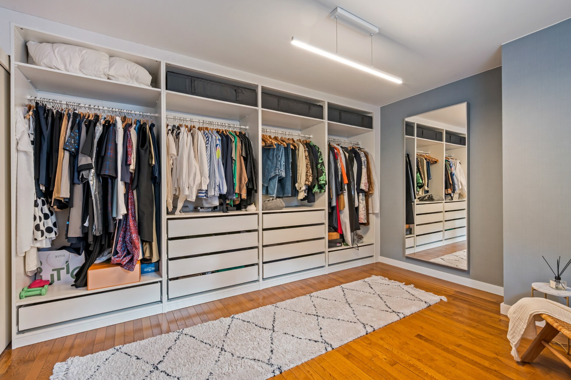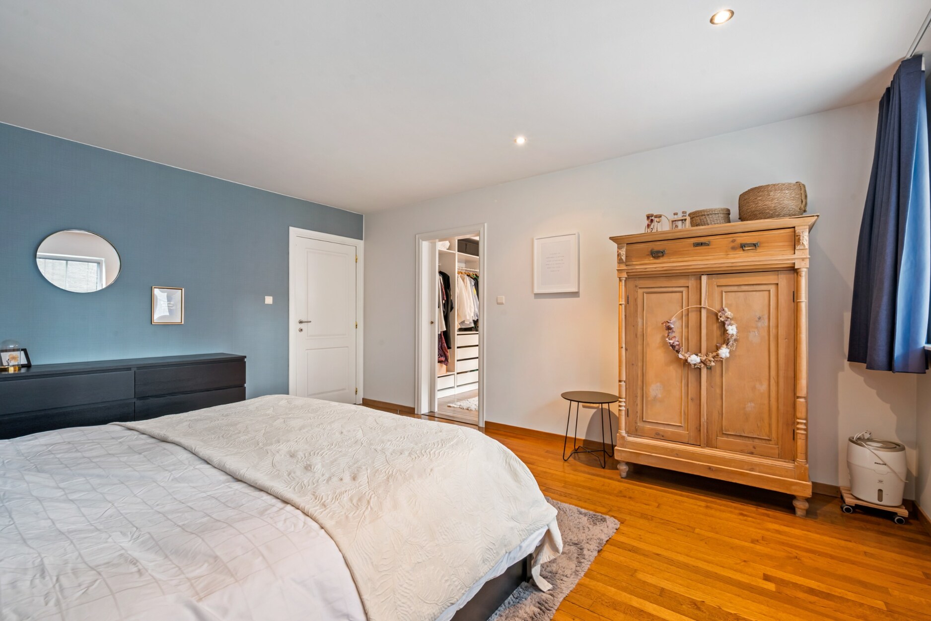 De natuurstenen trap vanuit de inkomhal brengt ons naar de bovenverdieping. Hier treffen we 4 ruime slaapkamers op parket, waarvan 1 met aanpalende dressing. Deze dressing kan mogelijk omgevormd worden tot 5de slaapkamer.