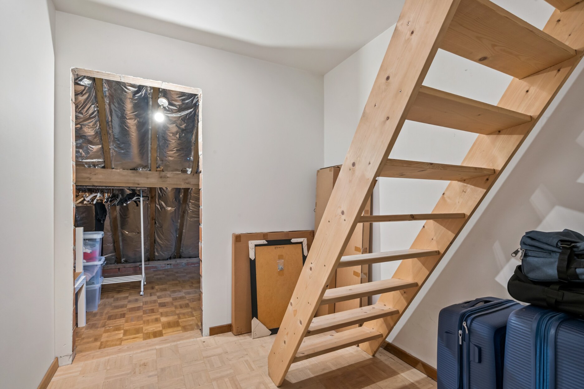Een vaste trap geeft toegang tot de geisoleerde zolderverdieping. Hier kunnen mogelijk nog extra kamers of hobbyruimten worden gecreëerd.