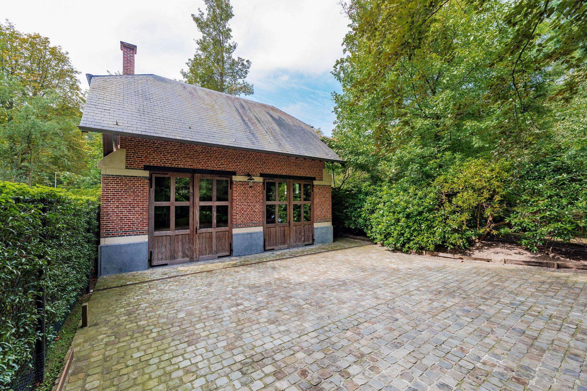 Het koetshuis dateert van 1907 en werd volledig gerenoveerd en bewoonbaar gemaakt. Momenteel doet het koetshuis dienst als extra kantoor, doch werd initieel ontworpen als garagegebouw met plaats voor 2 grote wagens, en mits autolift ruimte voor meer auto’s.